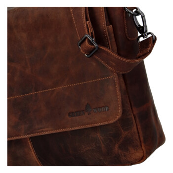 Krásná a luxusní pánská kožená taška GreenWood, pro váš každý pracovní i volný den. Taška se rozevírá na překlop, uvnitř nabízí dostatek místa pro vše, co musíte mít běžně u sebe. Přední i zadní část, také nabízí praktické kapsy, přední volná pod klopou, zadní velká na zip. Ucho je pevné a krátké do ruky. Dlouhý kožený popruh, pro pohodlné nošení jak na rameni, tak do kříže, je na připnutí. Přední díl zdobí stylové prošívání a logo značky. Objednejte ještě dnes a vyzkoušejte, vrátit ji můžete až za 30 dnů!