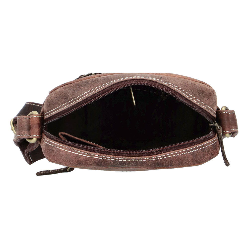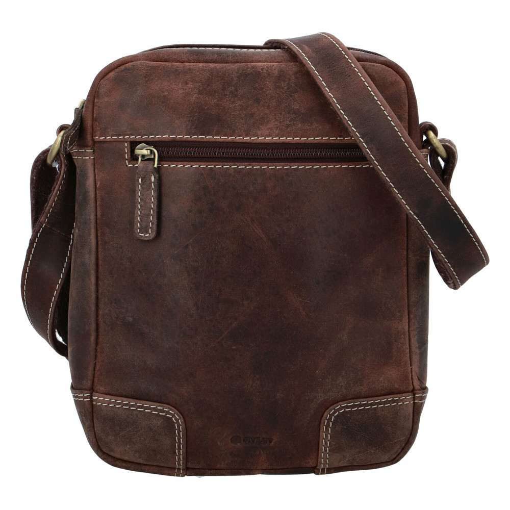 Hnědá pánská taška z hovězí kůže? Vyberte si z nové kolekce pánských kožených tašek značky Diviley Taška je z kvalitní broušené kůže, která získá časem originální patinu. Zepředu a zezadu, jako ozdoba a značka nezaměnitelnosti, se nachází výrazné prošívané rohy a kapsa na zip. Uvnitř má taška klasické uspořádání - nedělený prostor se dvěma menšími kapsičkami. Popruh je v kombinaci kůže a textilu, prošívaný, s maximální délkou 151 cm. Objednejte ještě dnes a vyzkoušejte, vrátit ji můžete až za 30 dnů!