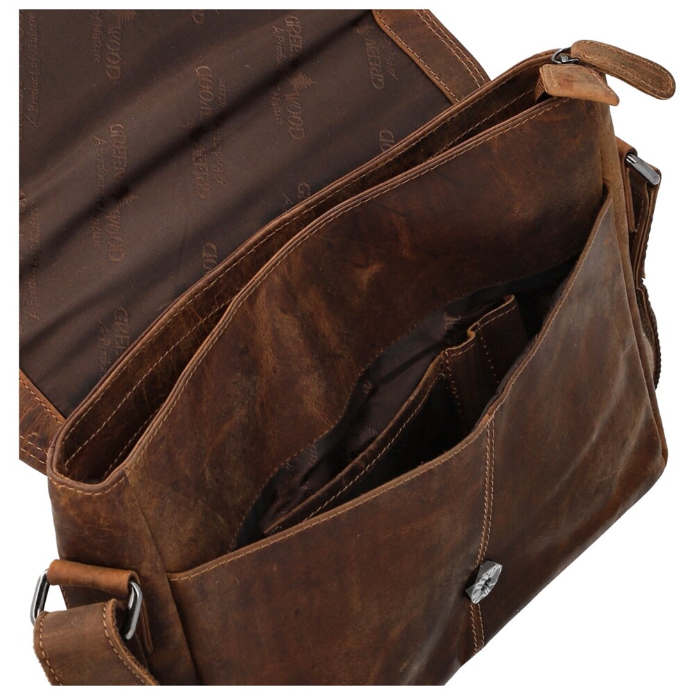 Pokud si chcete koupit kvalitní, reprezentativní tašku, která splní svůj účel, TATO je ta pravá! Značka Greenwood. Camel brašna je střední velikosti, velmi lehká, má kožený, prošívaný popruh s podšitím polyesterem. Klopa se otevírá pomocí magnetického cvoku. Pod klopou najdete volnou, větší kapsu kde je možné si uložit svůj telefon, diář a propisky, poslouží jako menší organizér. Hlavní kapsa je na zip, dělí se jemnou přepážkou s koženým lemem. Z vnější i vnitřní zadní strany najdete kapsu se zipem. Do brašny je možné uložit velký tablet nebo malý notebook. Veškeré produkty z broušené kůže je třeba impregnovat a mazat, vydrží Vám mnohem déle. Objednejte ještě dnes a vyzkoušejte, vrátit ji můžete až za 30 dnů!