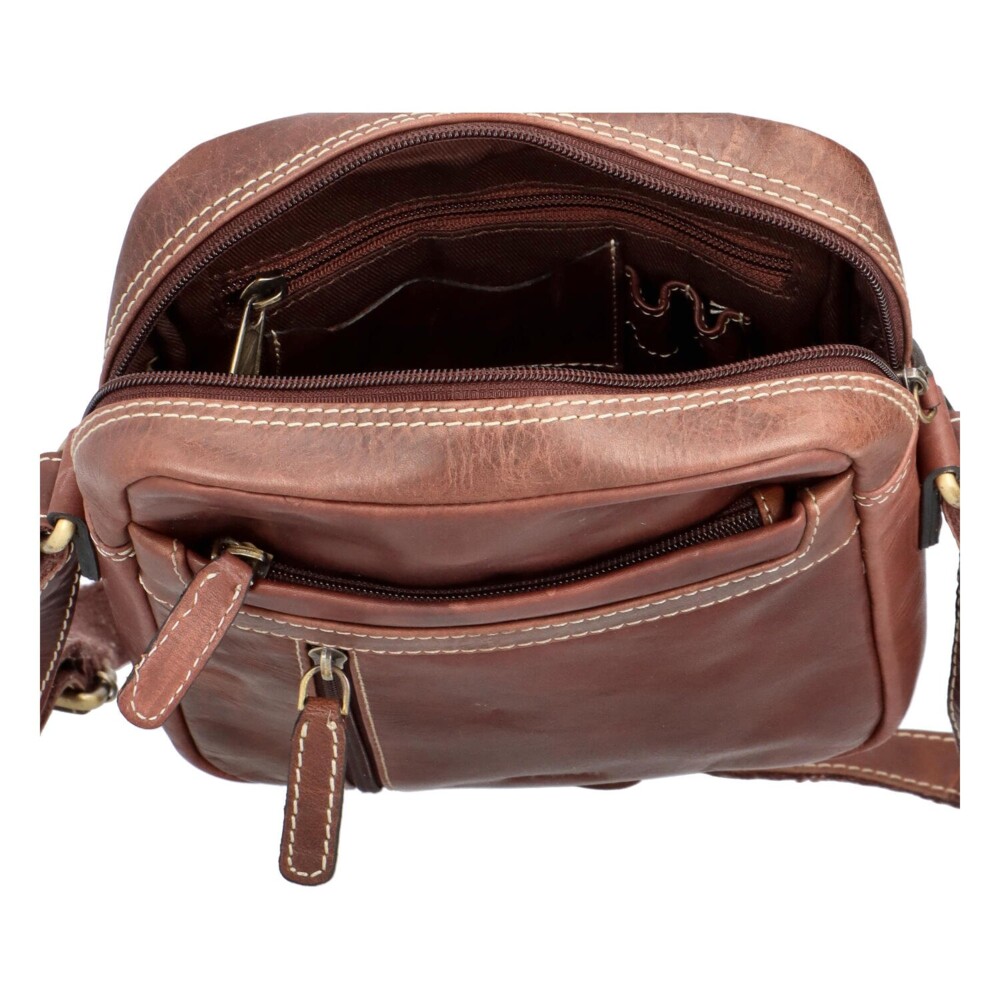 Hnědá pánská taška z hovězí kůže? Vyberte si z kolekce pánských kožených tašek značky Diviley Taška je z kvalitní hladké kůže, která získá časem originální patinu. Přední strana disponuje dvěma kapsičkami se zipy. Hlavní kapsa se otevírá zipe a uvnitř najdete i dvě přihrádky na propisky. Samozřejmostí je kapsa se zipem na zadní straně. Popruh je v polokožený, v kombinaci kůže a textilu, prošívaný, s maximální délkou 148 cm. Objednejte ještě dnes a vyzkoušejte, vrátit ji můžete až za 30 dnů!