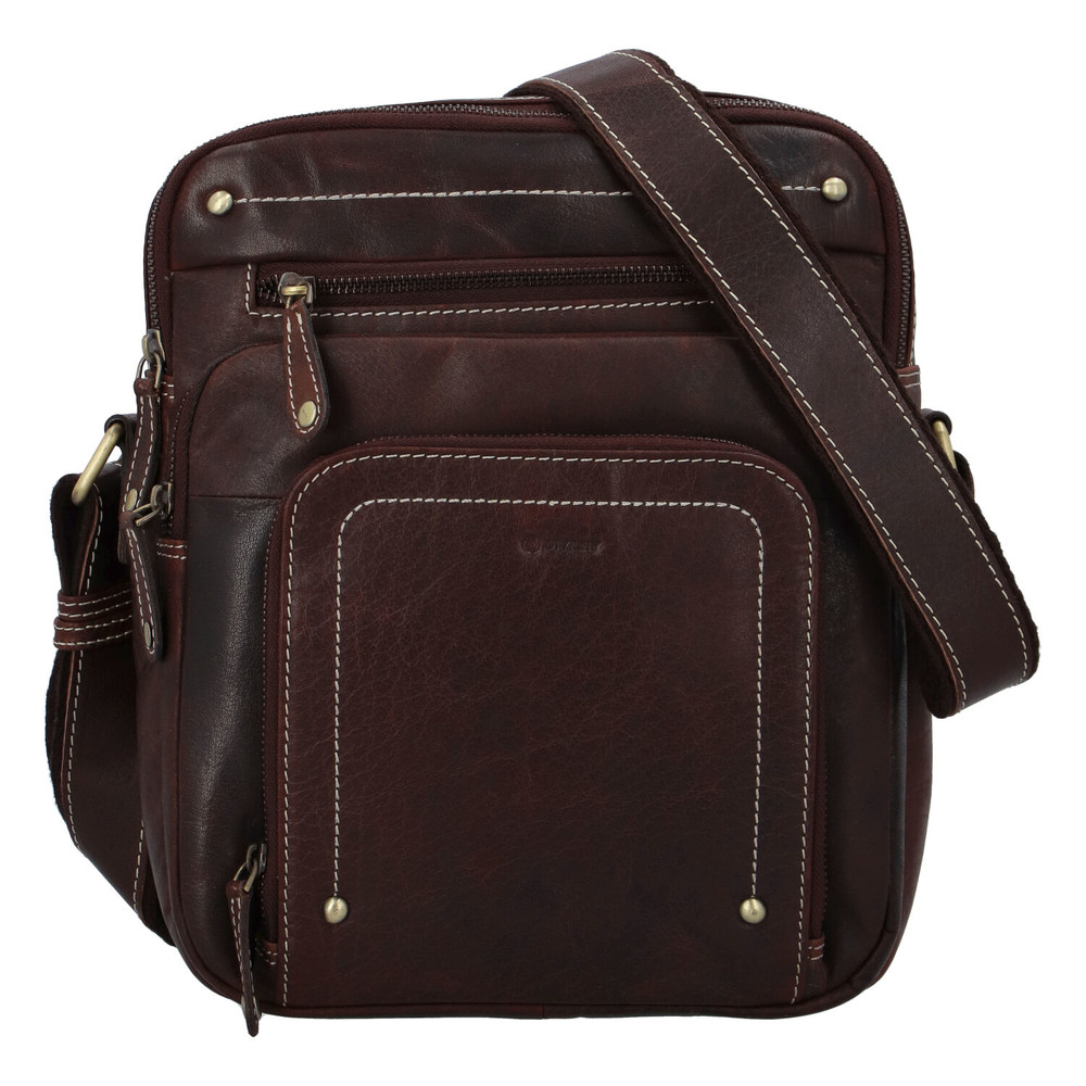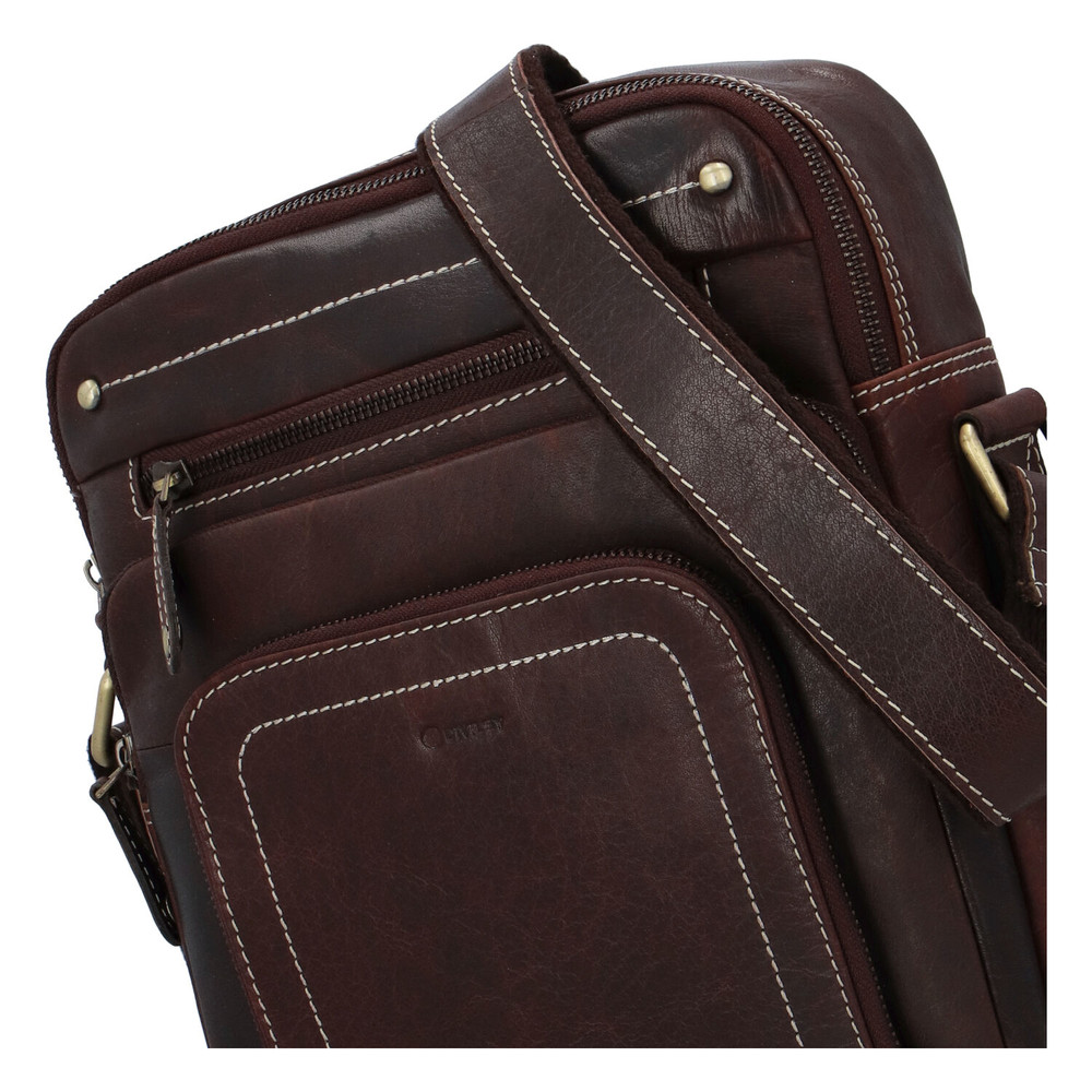 Koňakově hnědá větší pánská taška z hovězí kůže? Vyberte si z nové kolekce pánských kožených tašek značky Diviley. Taška je z kvalitní kůže, která získá časem originální patinu. Opravdu povedený kousek pánské kabelky! Perfektní detaily, výrazné prošití a spousta úložného prostoru. To vše nabízí tato taška. Do hlavní kapsy, která je plná dalších kapsiček, se vleze tablet s rozměry cca 23 x 28 cm. Popruh je v kombinaci kůže a textilu, prošívaný, s maximální délkou cca 145 cm. Objednejte ještě dnes a vyzkoušejte, vrátit ji můžete až za 30 dnů!