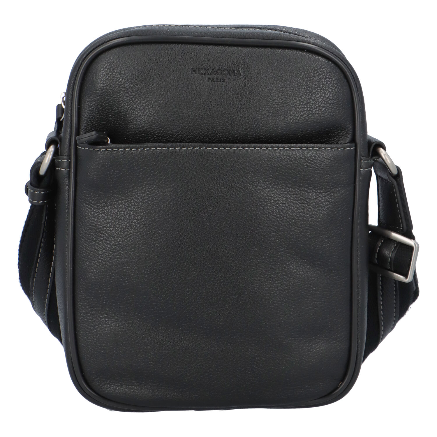 Černá luxusní brašnička s jemně vrásčitým designem, užitečná pro úschovu dokladů a osobních věcí, od francouzské značky Hexagona. Tato celokožená taška se vyznačuje velmi kvalitním zpracováním hovězí kůže a moderním designem, nosit ji můžete přes rameno nebo crossbody. Je menší velikosti. Uložíte si sem doklady, peněženku, telefon, klíče a pár dalších nutných věcí, které potřebujete každý den. Popruh tašky je nastavitelný v kombinaci textil/kůže. Prošití tašky je kontrastní, světle šedou nití. Dopřejte si skutečně mužskou záležitost. K dispozici máte dvě středně velké kapsy se zipy, a to na přední i zadní straně. Hlavní kapsa se otevírá také zipem, uvnitř je volná kapsička na telefon nebo powerbanku a kapsička se zipem na cennosti. ✓ Klasická kvalitní taška do města, do práce i na procházky. ✓