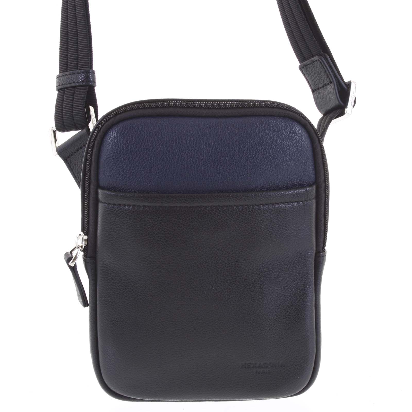 Dopřejte sobě nebo svému blízkému horkou novinku od francouzské značky Hexagona. Kožená pánská kabelka na doklady v černo modrém provedení má moderní design a je ušita z kvalitní hovězí kůže. Je středně malá, pojme objemnější peněženku, klíče, mobil, doklady a případně pouzdro s brýlemi. Je to o něco větší varianta podobné tašky. Hodit se Vám bude ve městě, na cestách autem, k saku, ale i k riflím. Kvalitní zboží, které vydrží! Udělejte sobě nebo vašemu blízkému radost tímto skvělým dárkem! Uvnitř hlavní kapsy na zip najdete volnou kapsu na telefon a malou kapsičku se zipem na drobnosti. Nenápadná středně velká kapsa na přední straně se otevírá magnetickým cvočkem. Objednejte ještě dnes a vyzkoušejte, vrátit ji můžete do 30ti dnů!