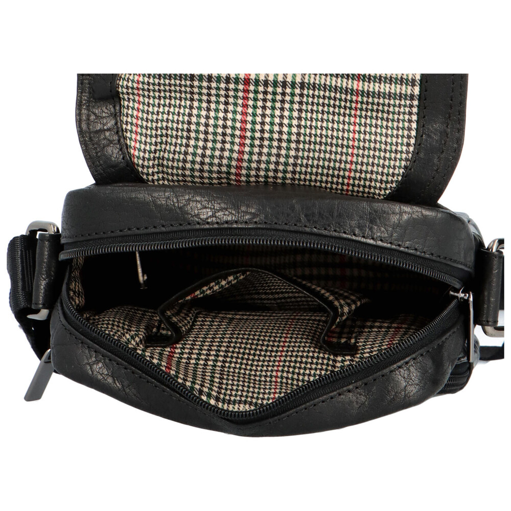 Každý správný muž, který jde s dobou by měl mít tento praktický doplněk a to na všechny své osobní věci, kterých je zapotřebí každý den. Menší, černá, prošívaná crossbody brašna, z pevné hovězí kůže značky SendiDesign, s klopou na magnetický cvoček Vám bude skvěle sedět! Taška má jednu hlavní a jednu střední kapsu. Další čtyři kapsičky jsou na drobnosti a cennosti. Téměř všechny se zapínají zipem, kromě jedné vnitřní kapsičky na telefon, ta je volná. Popruh je nastavitelný, z polyesteru, s logem značky a koženými úchyty. Objednejte ještě dnes a vyzkoušejte, vrátit ji můžete až za 30 dnů! Tuto tašku můžete zkombinovat s jedinečnými peněženkami stejné značky, například s modelem Benny!