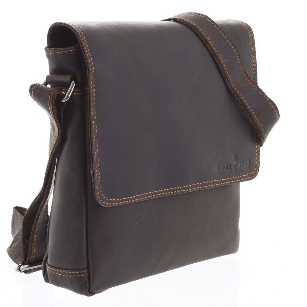 Pánská kožená taška přes rameno tmavě hnědá - Greenwood Stranger