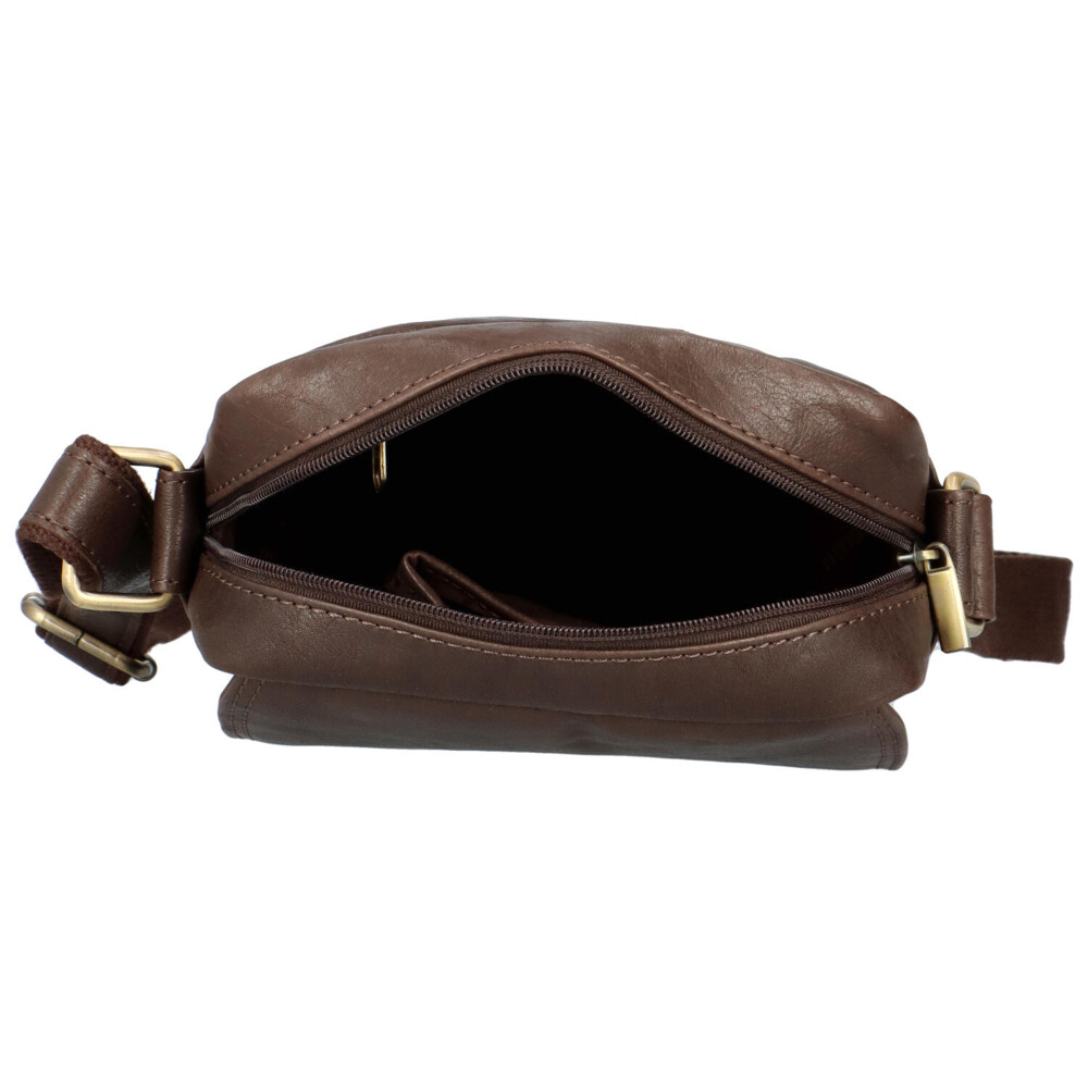 Menší, pánská, crossbody taška s klopou, z kvalitní hovězí kůže, značky SendiDesign. Její klopa je na magnetický cvoček, hned pod ní najdete kapsu se zipem. Hlavní kapsu klopa nepřekrývá. Uvnitř naleznete slušný prostor na doklady a osobní věci, volnou kapsu na telefon a kapsu se zipem. Popruh je nastavitelný, pevný a polokožený. Brašnu lze nosit i přes rameno, podšívka je z jemné látky s logem značky. Objednejte ještě dnes a vyzkoušejte, vrátit ji můžete až za 30 dnů!