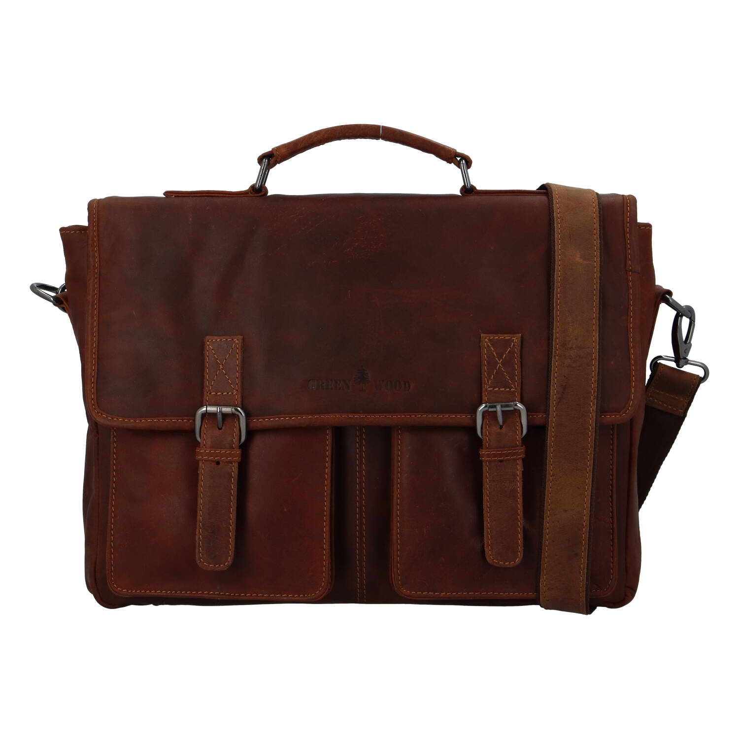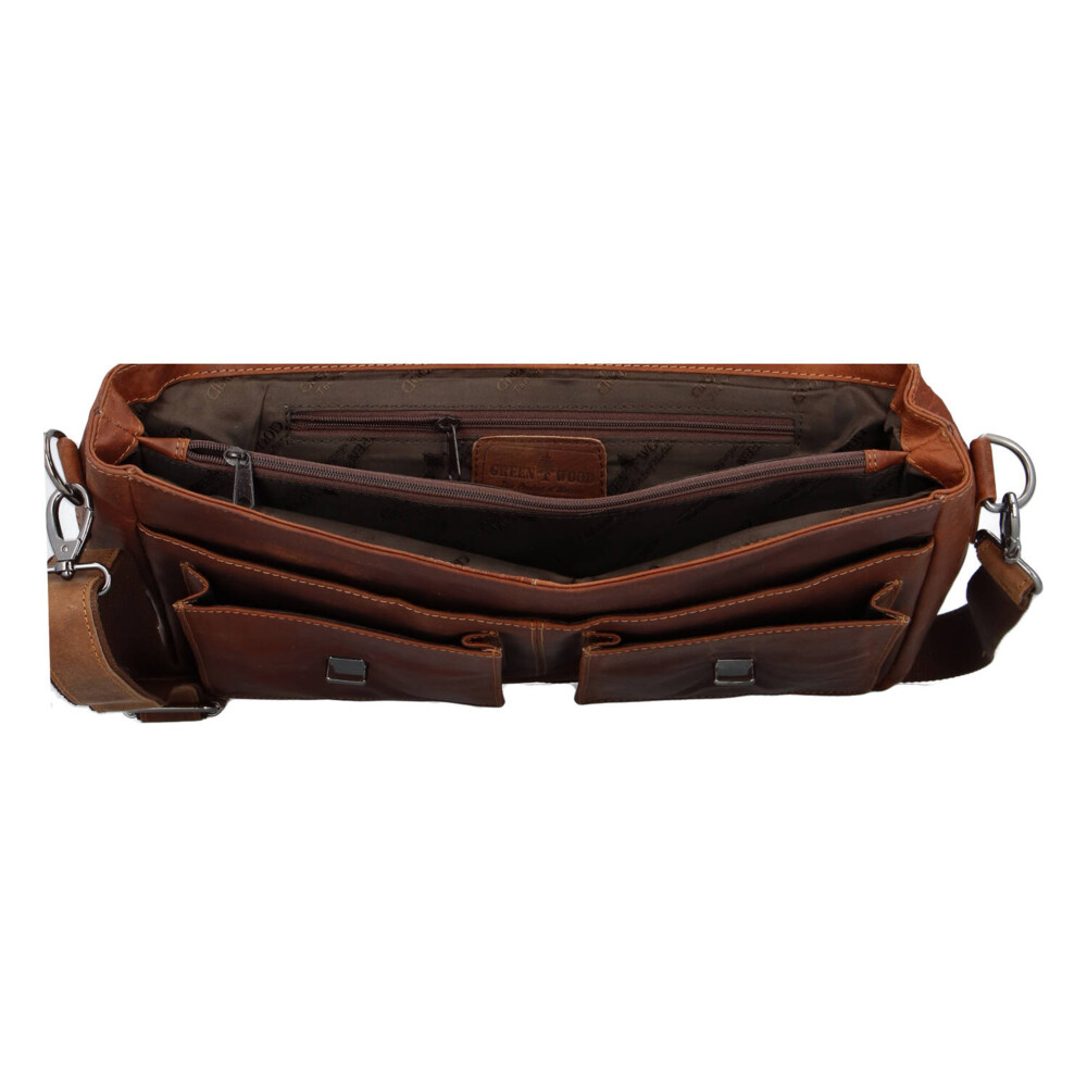 Luxusní brašna přes rameno, využitelná i jako pracovní aktovka od značky Greenwood. Velká, kvalitní, kožená brašna se Vám bude hodit zejména při pracovních příležitostech. Ukažte svůj vkus s touto jedinečnou stylovou bombou! Nosit ji můžete v ruce, za ploché pevnější madlo, nebo s polokoženým popruhem přes rameno. Klopa brašny se otevírá pomocí dvou klasických kovových klipsů. Pod klopou najdete 3 praktické volné kapsy, uvnitř jedné je i rozsáhlejší organizér, zde si uložíte telefon, pera, doklady a také vizitky či kreditní kartu. Hlavní prostor se dělí kapsou se zipem na dva. Zde si uložíte dokumenty, spisy, osobní věci i notebook (max. 39,5 x 27 cm). Chybět Vám nebudou kapsy se zipy z obou stran zadní části brašny. Drobné škrábance nejsou závadou kůže, časem a užíváním získají svůj individuální charakter a patinu. Doporučujeme impregnovat. Objednejte ještě dnes a vyzkoušejte, vrátit ji můžete až za 30 dnů!