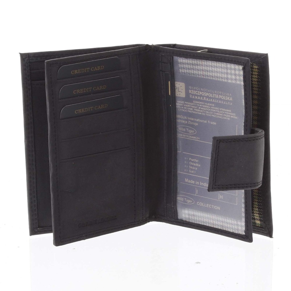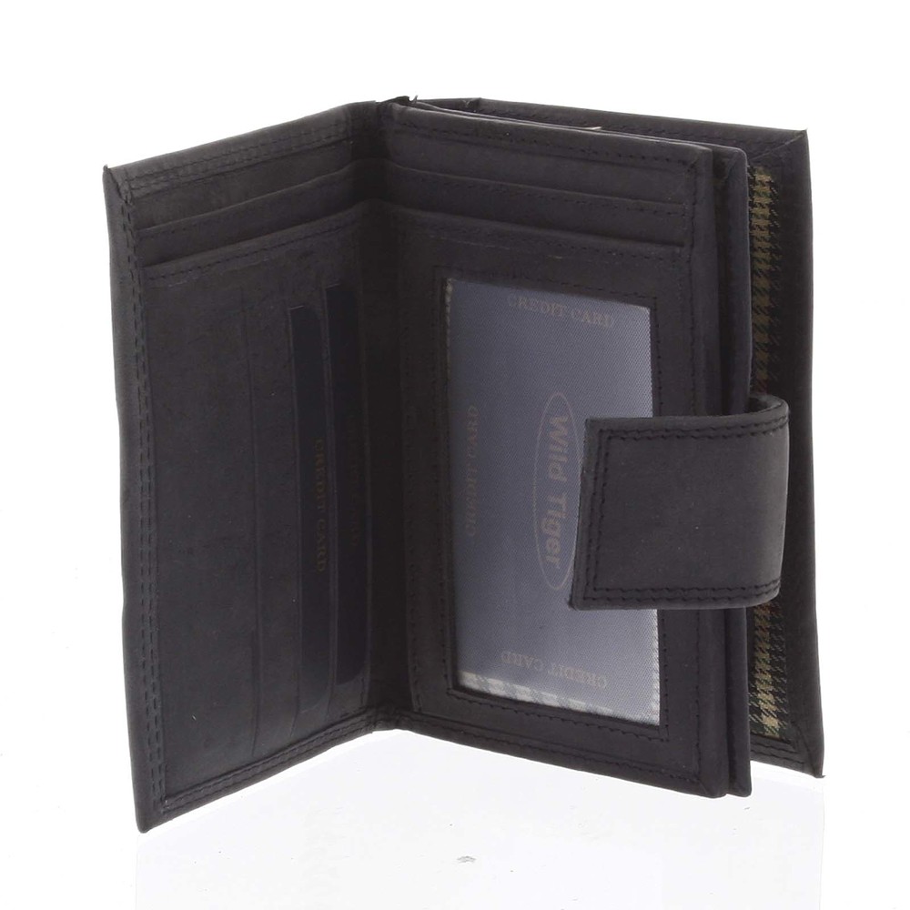 Stylová a kvalitní černá kožená peněženka z broušené jemné kůže od značky WILD se ve světě neztratí. Jedná se o model kvality a unisex vzoru. Na přední straně si všimnete jemně raženého loga značky. Otevírá se hranatým páskem se zápinkou, zde najdete několik přihrádek pro doklady, dvě úložiště na bankovky a osm přihrádek na kreditní karty či vizitky. Z druhé strany peněženky je zip, který uzavírá dvojitou kapsu na mince. Objednejte ještě dnes a vyzkoušejte, vrátit ji můžete až za 30 dnů!