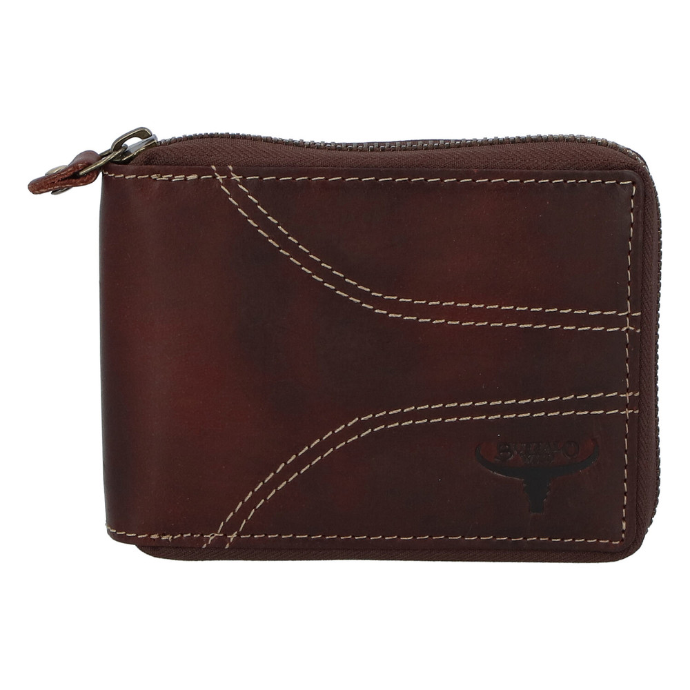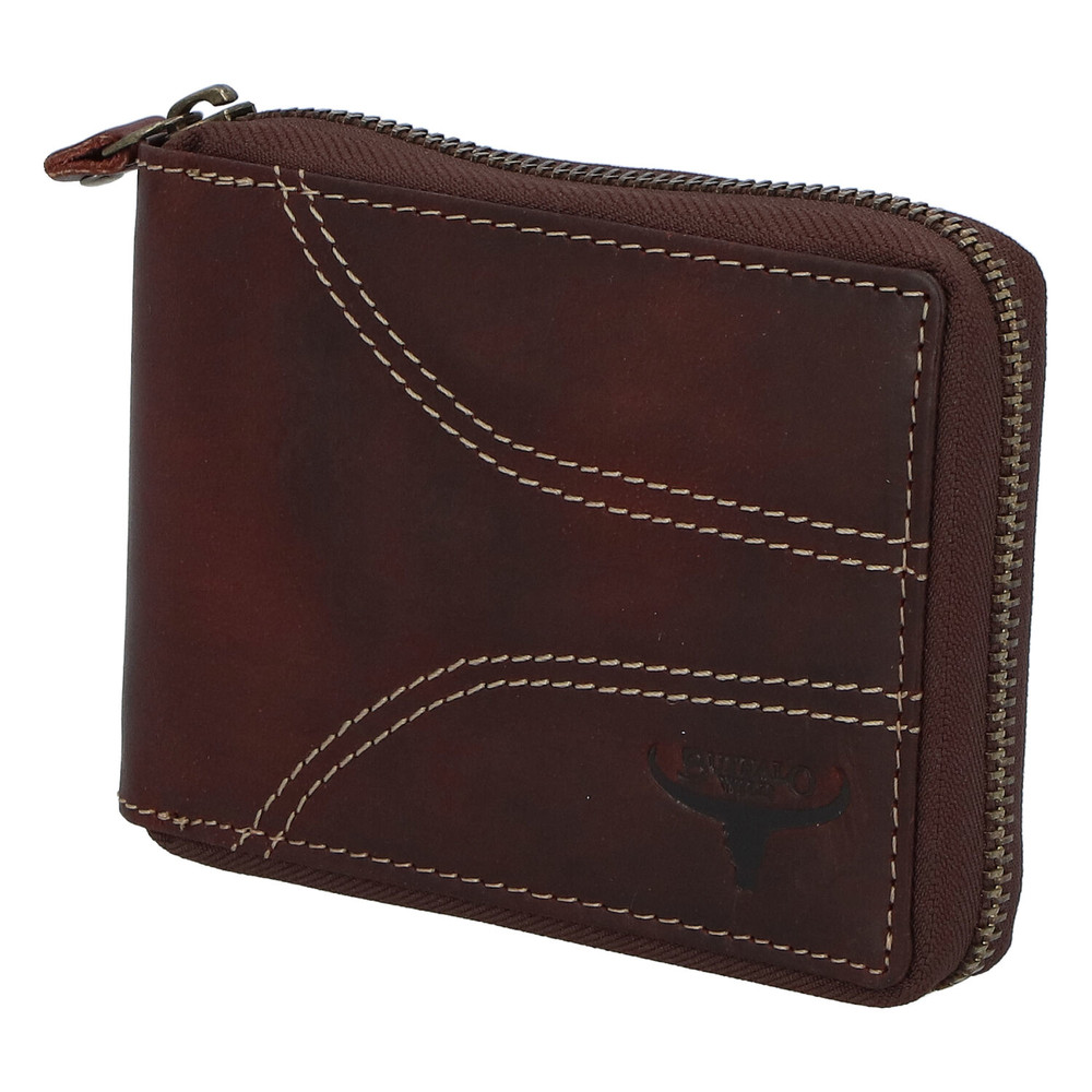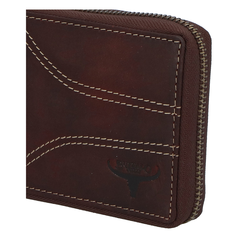 Pánská kožená broušená peněženka na zip hnědá - BUFFALO Bul