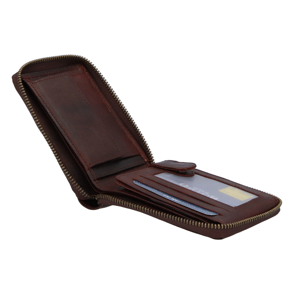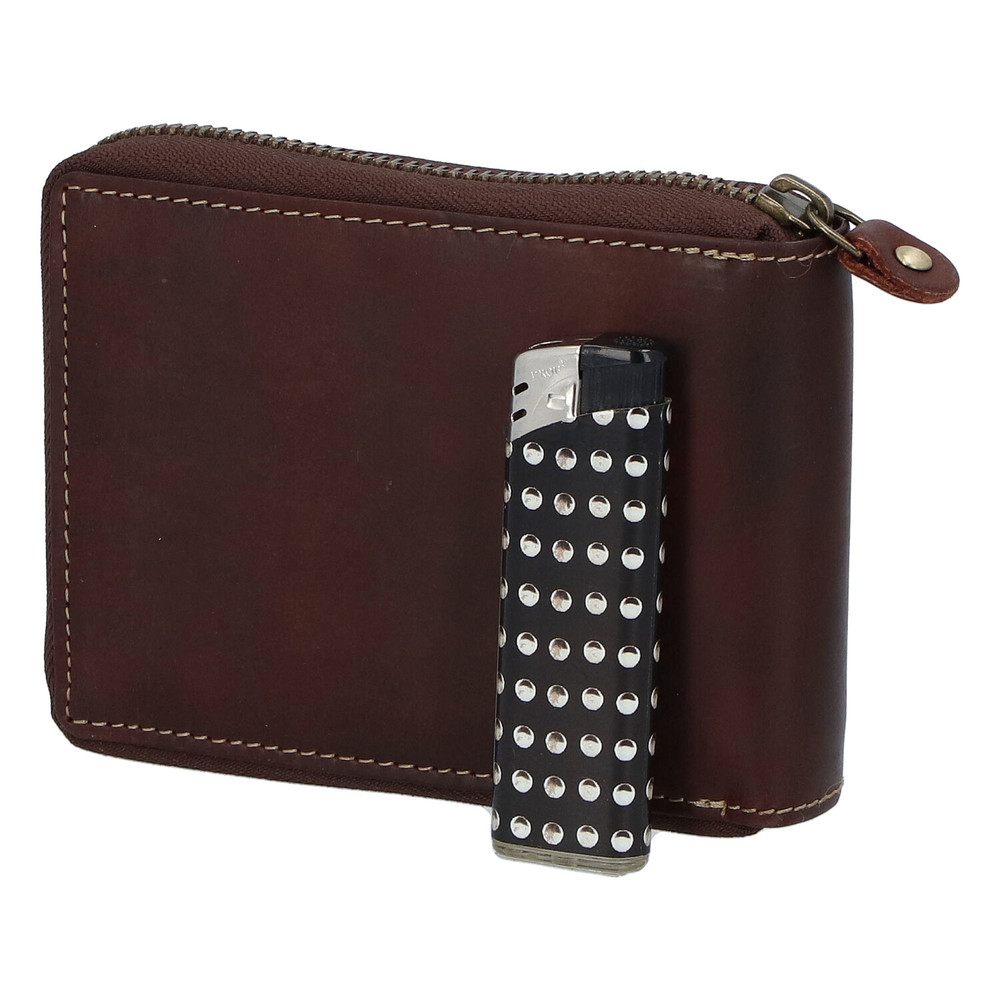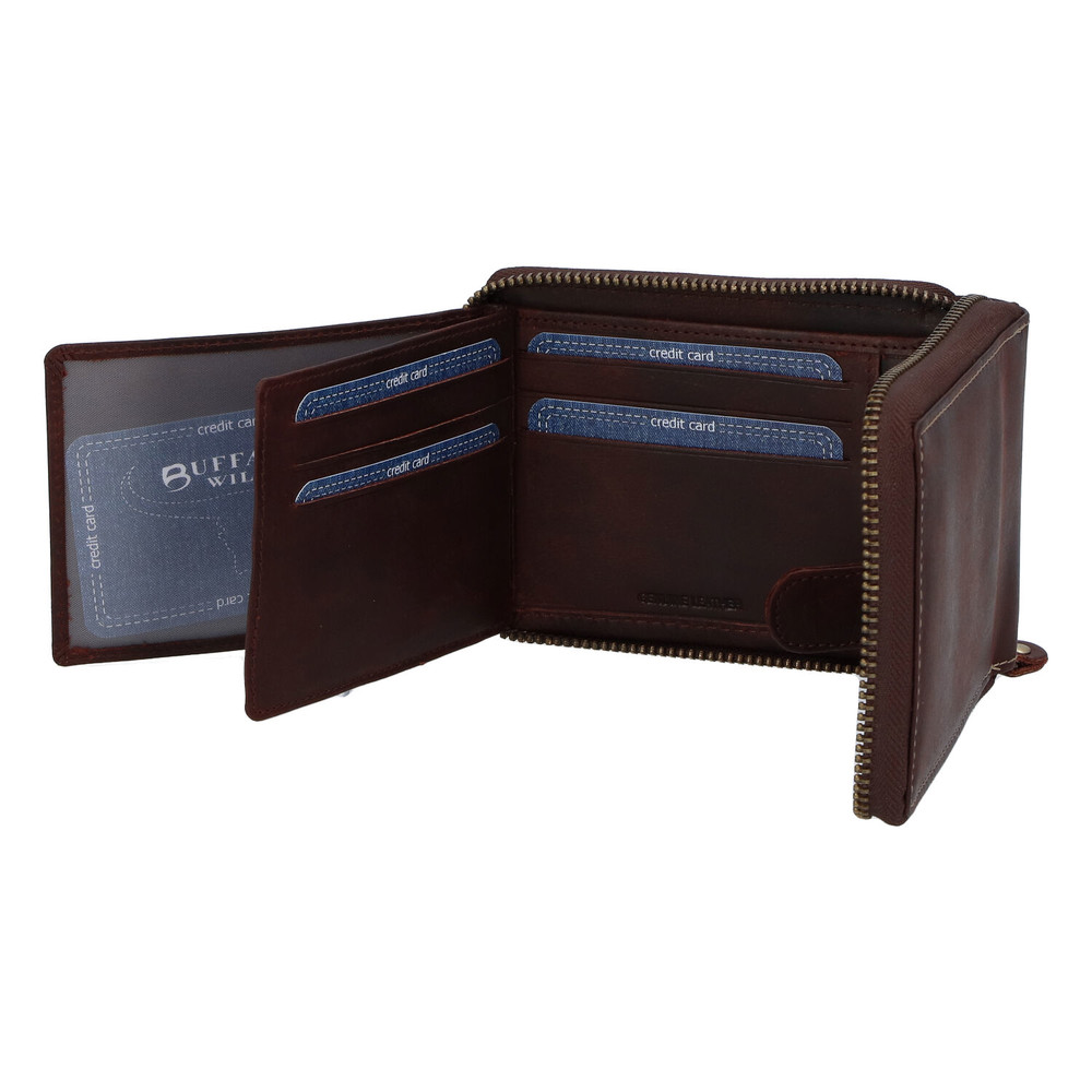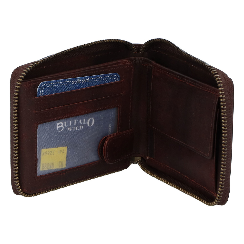 Pánská kožená broušená peněženka na zip hnědá - BUFFALO Bul