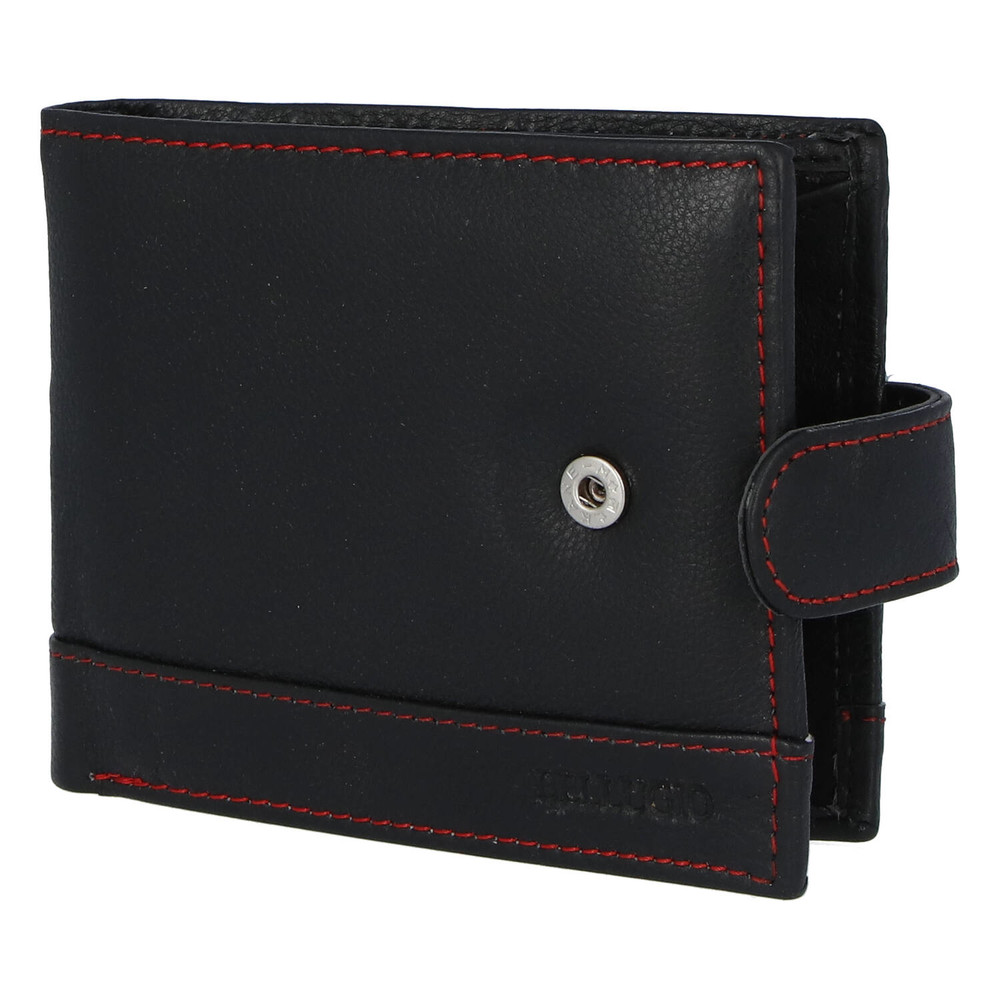 Černá, pánská, kožená peněženka Bellugio s červeným prošíváním a kostkovanou podšívkou. Klasická a líbivá pánská peněženka se zápinkou. Na kreditní karty a doklady využijete přihrádky na levé straně peněženky. Druhá půlka Vám nabídne kapsu se cvokem na kovové mince a bankovky uložíte do dalších dvou kapes. Objednejte ještě dnes a vyzkoušejte, vrátit ji můžete až za 30 dnů!