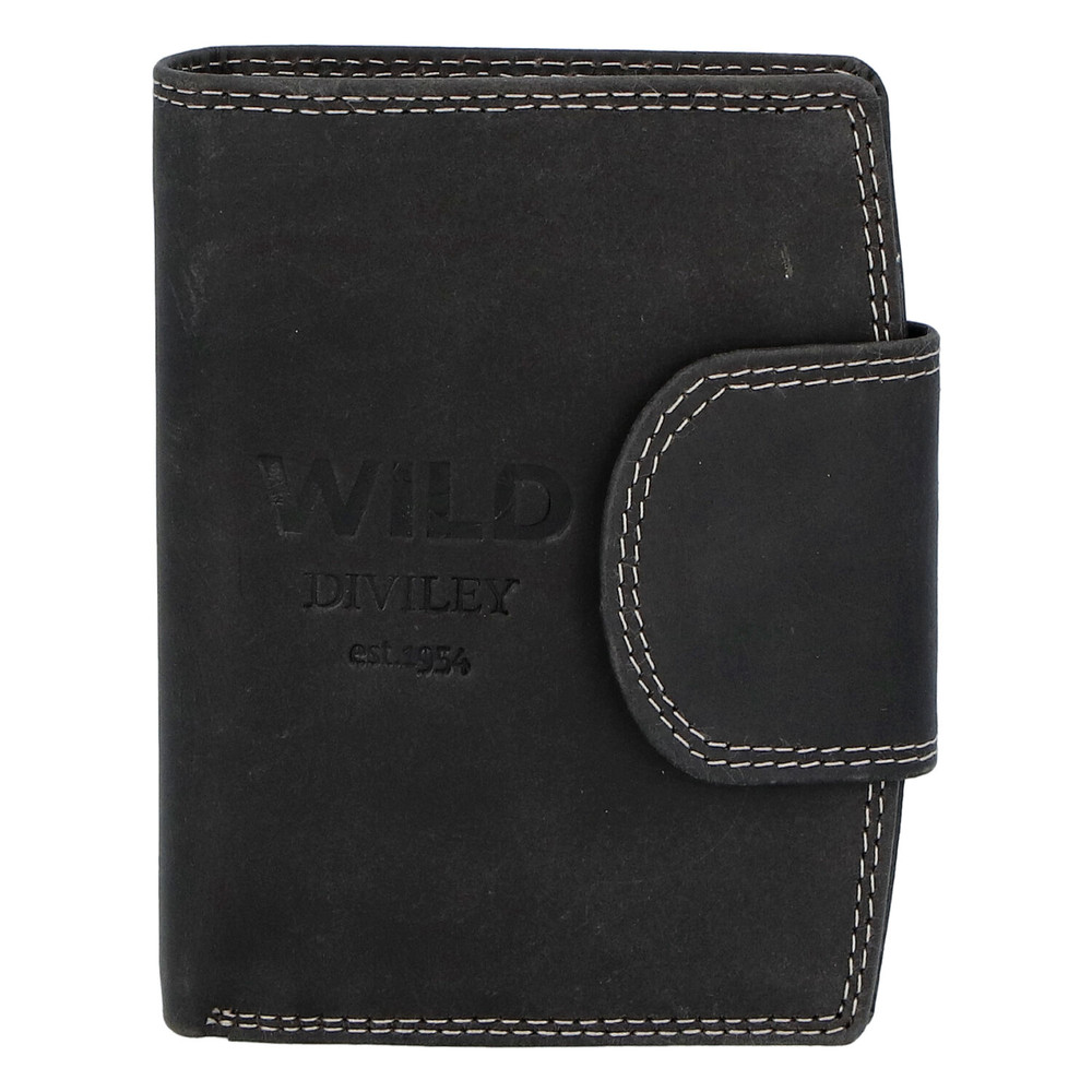 Pokud máte zájem o kvalitní peněženku z černé, jemně broušené, hovězí kůže, nyní máte možnost! Objednejte ještě dnes a vyzkoušejte, vrátit ji můžete až za 30 dnů! Značka WILD je tu pro Vás a nabízí Vám kvalitní peněženku se zápinkou. Má dvojité kontrastní prošití a širší pás se cvočkem na zapnutí. Příjemně se vejde do zadní kapsy u kalhot i do kapes u praktických tašek na doklady. Najdete zde kapsu na mince se cvočkem, dvě hlubší kapsy na bankovky a blok na doklady a kreditní karty, celkem sem umístíte 12 kreditních karet, dokladů či vizitek. Logo je ražené do prostřední části přední strany peněženky. Tato peněženka Vás v požadavcích na prostor rozhodně nezklame. Charakteristika kůže nemůže být předmětem reklamace.