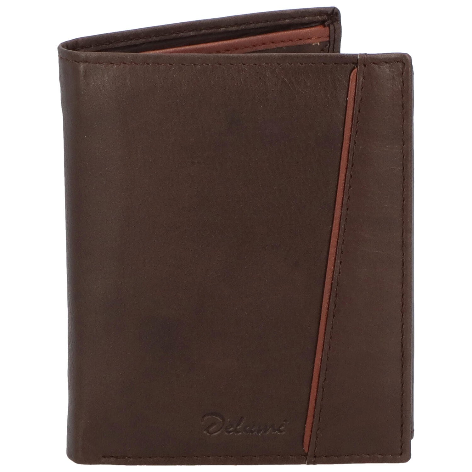 Pánská kožená peněženka šitá na výšku, uvnitř se zápinkou, pro bezpečné uložení vašich důležitých věcí. Po rozevření nabízí místo pro uložení vašich dokladů i karet. Na drobné mince slouží kapsa na druk a nechybí prostorné přihrádky na papírové peníze. Přední díl zdobí jemný barevný proužek a logo značky. Objednejte ještě dnes a vyzkoušejte, vrátit ji můžete až za 30 dnů!