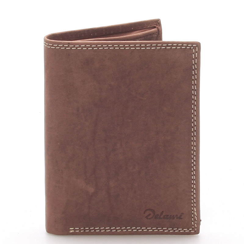 Kožená pánská hnědá peněženka Delami. Peněženka je praktická, z pravé kůže. Peněženka se neuzavírá. Má kapsy na drobné, na bankovky, doklady, či kreditní karty. Ty se zapínají pomocí zipu či běžného cvočku. Kvalita a jednoduchost, kterou si oblíbíte.