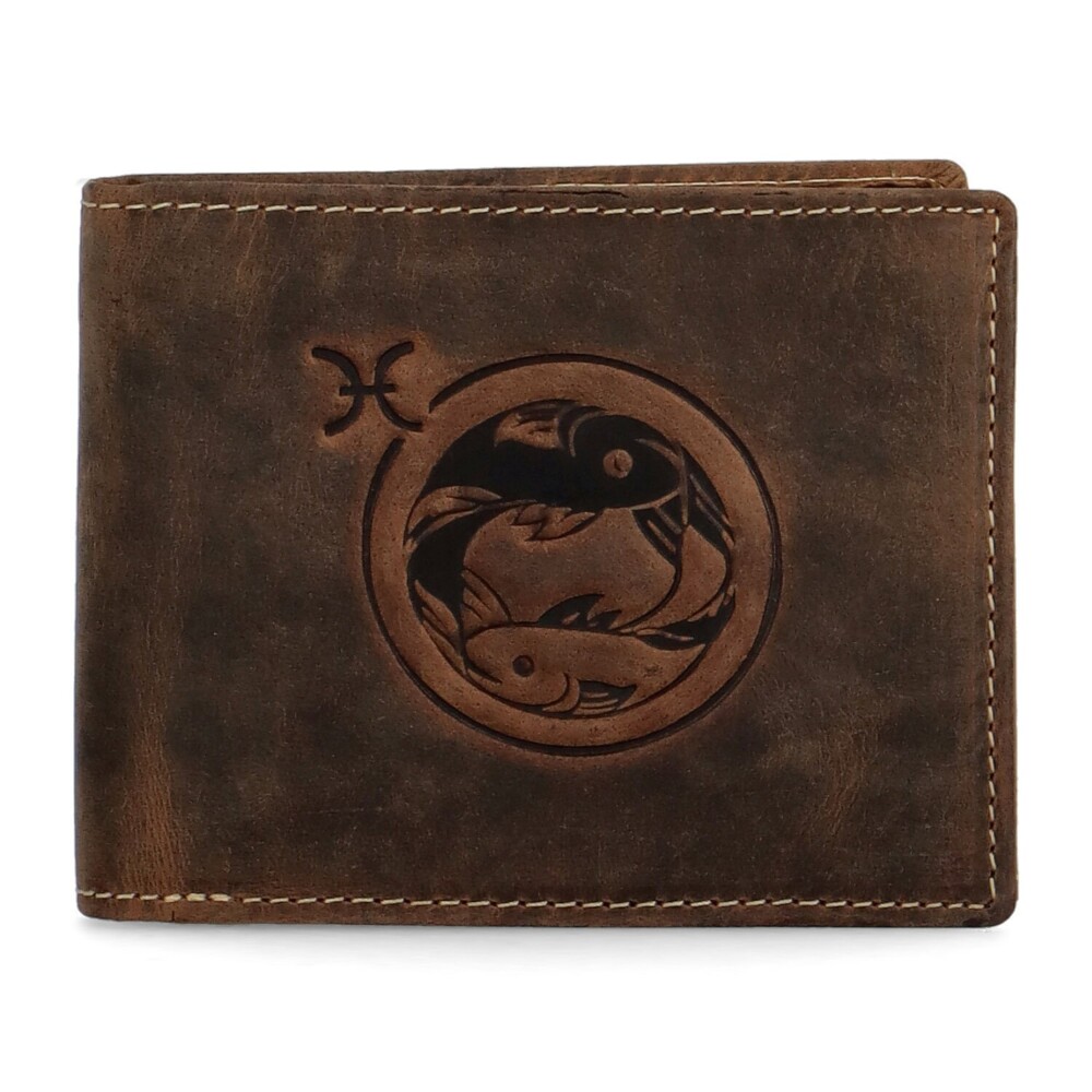 Pánská peněženka na šířku z hovězí broušené kůže je ozdobně prošitá a na přední straně má peněženka vypálené astrologické znamení do kůže. Uvnitř najdete spoustu přihrádek na vaše platební karty, doklady i prostor pro papírové peníze, nechybí kapsička na drobné. Uprostřed najdete ještě malou kapsičku na zip. Dodáváme v dárkové krabičce. Tak objednejte ještě dnes a vyzkoušejte, vrátit ji můžete do 30ti dnů.