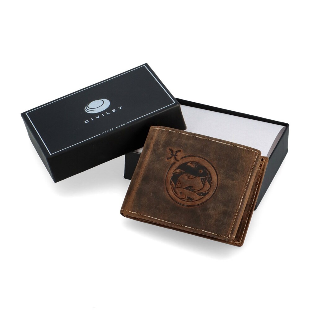 Pánská kožená peněženka hnědá - Diviley Steig Ryby