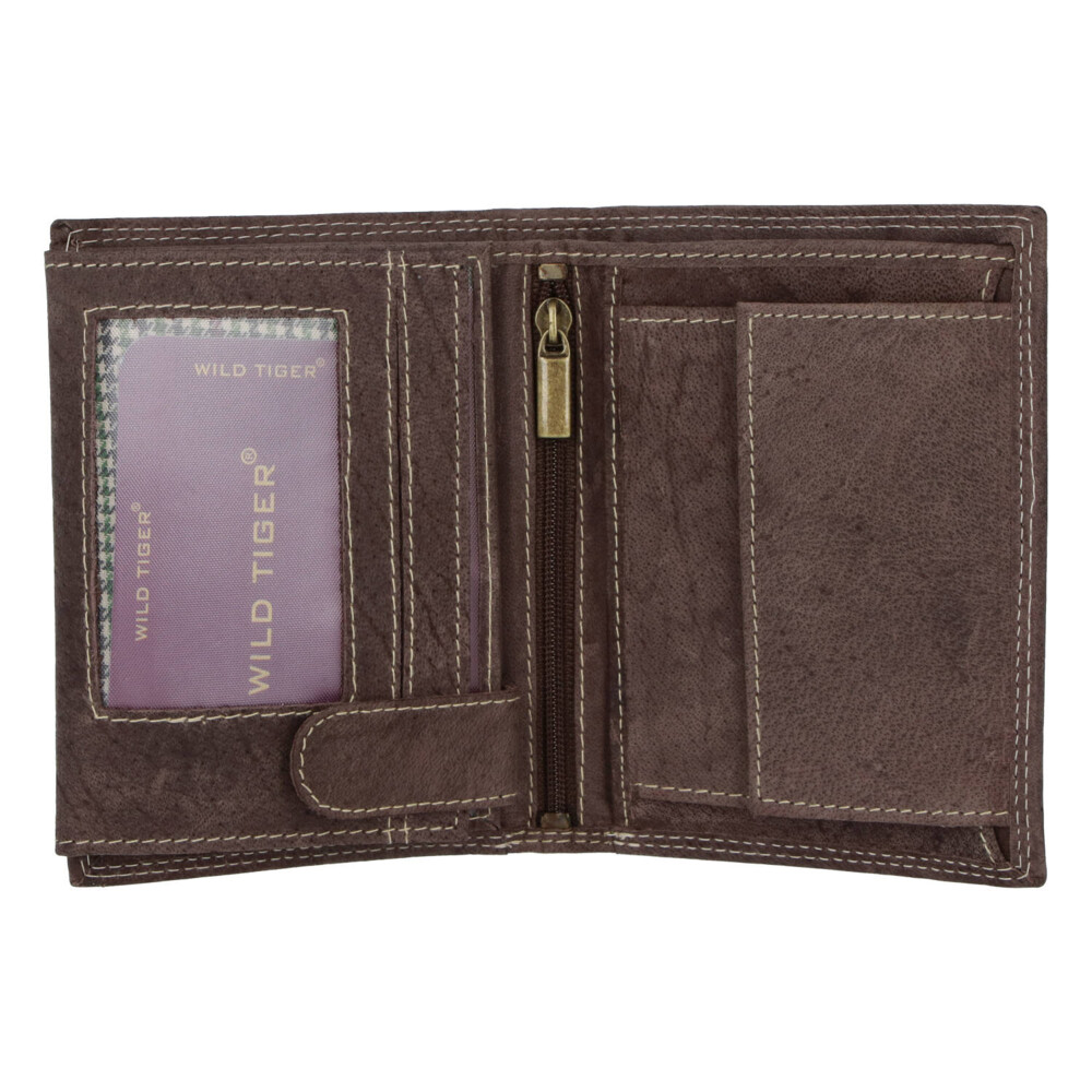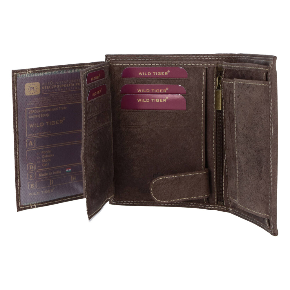 Pánská peněženka z broušené kůže v elegantním provedení na výšku zaujme na první pohled svým nadčasovým vzhledem. Přední stranu zdobí decentní logo značky a jemné prošití po obvodu, které podtrhuje precizní zpracování a dodává peněžence charakter. Interiér je prakticky a přehledně řešen - nabízí kapsy na platební karty i přihrádky na papírové bankovky. Nechybí ani kapsa na mince se zapínáním na druk a středová vnitřní zipová kapsička pro bezpečné uložení drobností. Mosazné kování dodává peněžence elegantní detail a zároveň zajišťuje dlouhou životnost. Ideální doplněk pro muže, kteří ocení kvalitu, funkčnost a styl. Objednejte ještě dnes a vyzkoušejte, vrátit ji můžete do 30ti dnů.