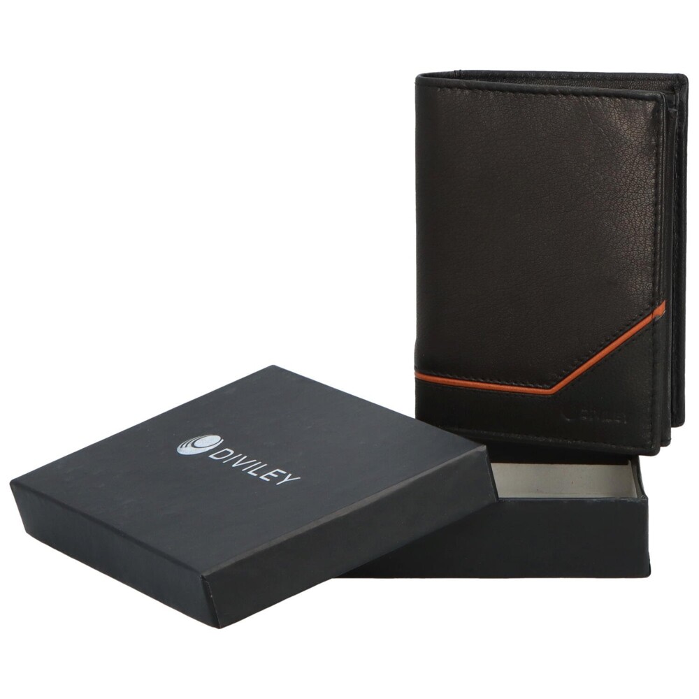 Pánská pevná kožená peněženka černá - Diviley Kainat Cognac