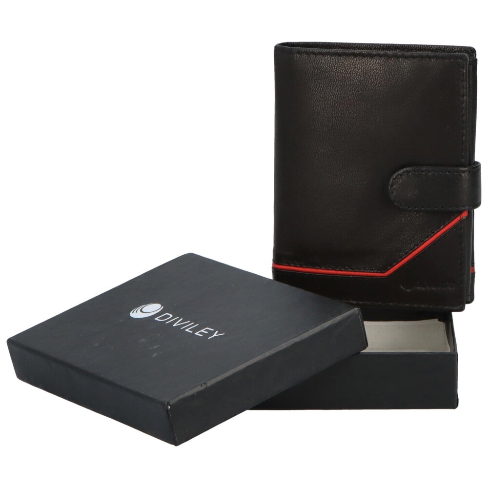 Větší pánská černá kožená peněženka se zápinkou - Diviley Heelal Red