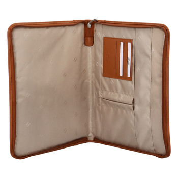 Představujeme Vám jednu z krásných pouzder na spisy a lejstra od značky Hexagona. Francouzský produkt v koňakové barvě si zamilujete na první pohled. Praktická kožená diplomatka je měkká, vrásčitá a zapíná se zipem po 3/4 obvodu. Vnitřní prostor je určen pro spisy, akta, papíry, ale také pro osobní věci, jako jsou vizitky, kreditní karty, propisky a doklady. Využít zde můžete celkem devíti přihrádek na výše zmíněné věci a jednu větší volnou, například na tablet nebo složku, kterou potřebujete mít bokem. Potěší Vás i kapsa se zipem na zadní straně spisovky. Objednejte ještě dnes a vyzkoušejte, vrátit ji můžete až za 30 dnů! ✅ Bonusem je originální krabička, obal na spisovku. ✉ Zakupte tento praktický a módní doplněk a slaďte jej například s peněženkou či klíčenkou, kterou navíc přispějete handicapovaným dětem ze Střední školy F. D. Roosevelta Brno. ✉