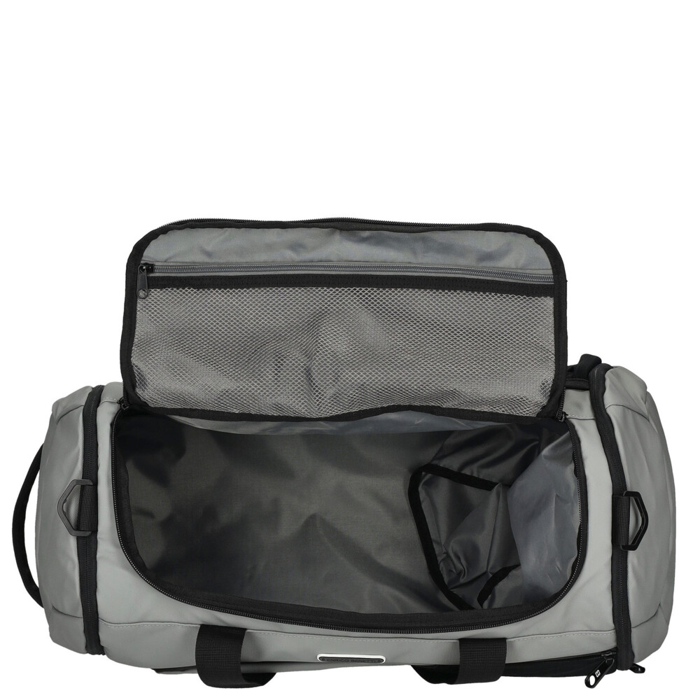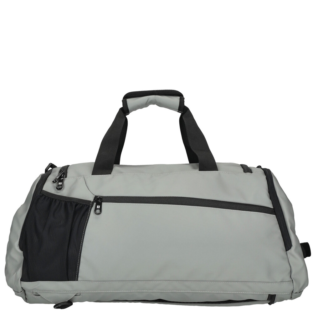 Objednejte ještě dnes a vyzkoušejte, vrátit ji můžete až za 30 dnů! Moderní cestovní taška, od značky Enrico Benetti, ve světle šedé barvě je navržena pro každodenní využití – do fitness centra, na sport, víkendové pobyty i pracovní cesty. Je vyrobena z odolného syntetického materiálu, který je lehký, pevný a snadno se udržuje. Díky sportovnímu, ale čistému designu působí dynamicky a zároveň univerzálně. Hlavní kapsa je oválná a na zip, další kapsy se zipem najdete na přední straně tašky a na bocích, to lze skvěle využít na osobní či menší věci a občerstvení. Nechybí zde přihrádky a síťované kapsy uvnitř i vně cestovky. Nosit ji lze klasicky přes rameno s polyesterovým popruhem, za uši, které jsou polstrované nebo také disponuje polstrovanými popruhy na záda!