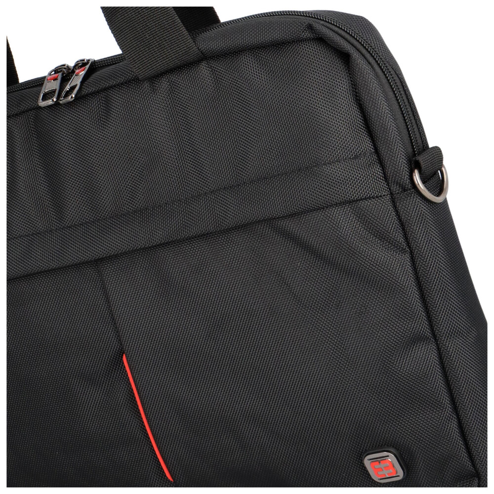 Kvalitní taška na notebook v černé barvě s červenými detaily od značky Enrico Benetti. Hlavní kapsa se otevírá na zip, uvnitř pohodlně uložíte 15" notebook do samostatné vyztužené přihrádky. Hlavní kapsa nabídne ještě dvě síťované přihrádky. Novinka! Objednejte ještě dnes a vyzkoušejte, vrátit ji můžete až za 30 dnů! Přední i zadní strana tašky má kapsu na zip pro uložení dalšího příslušenství.