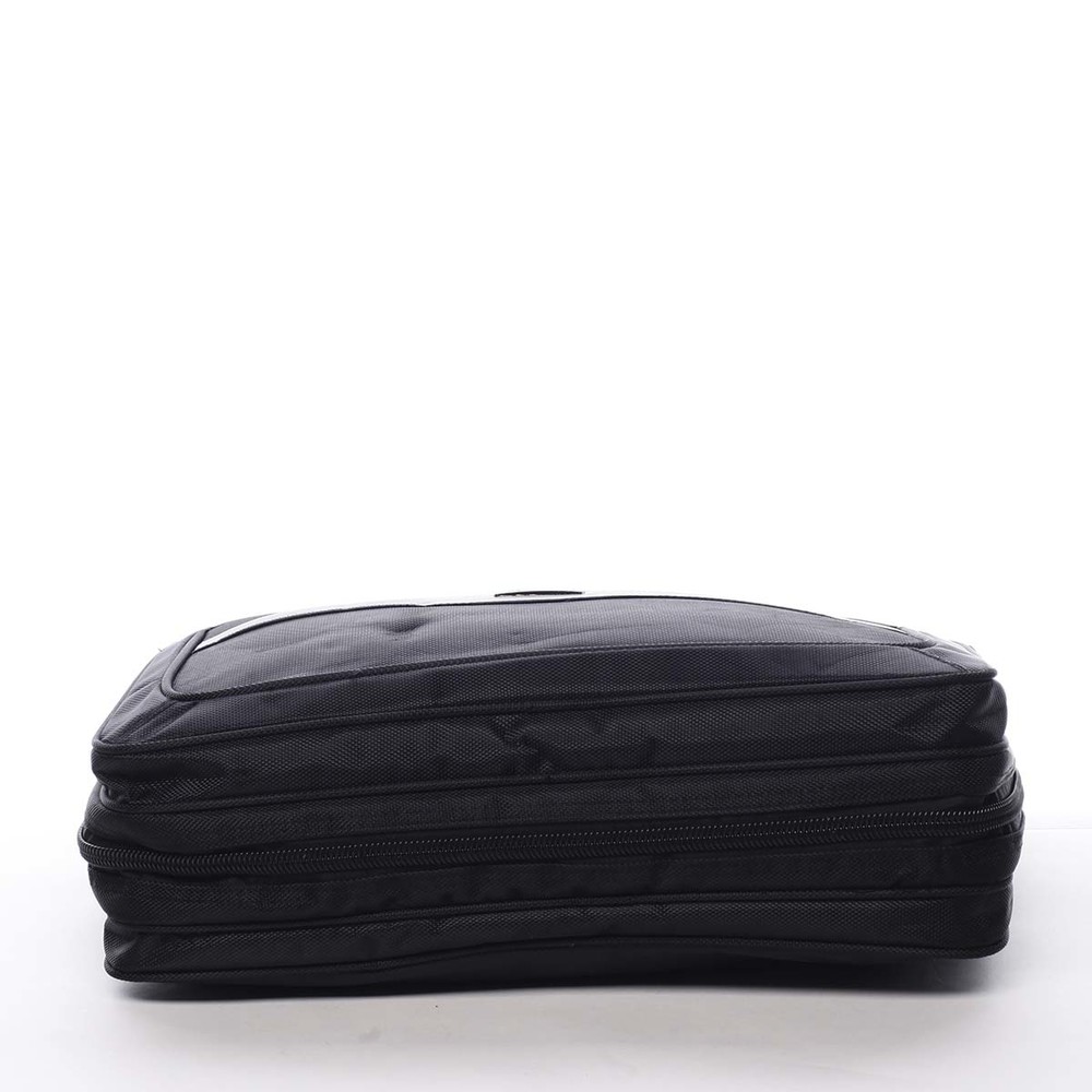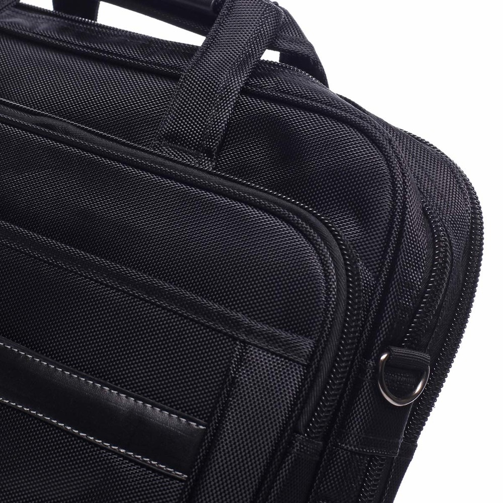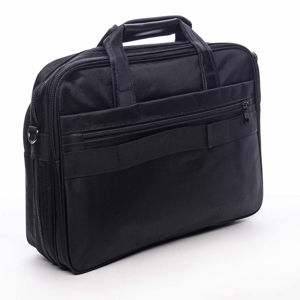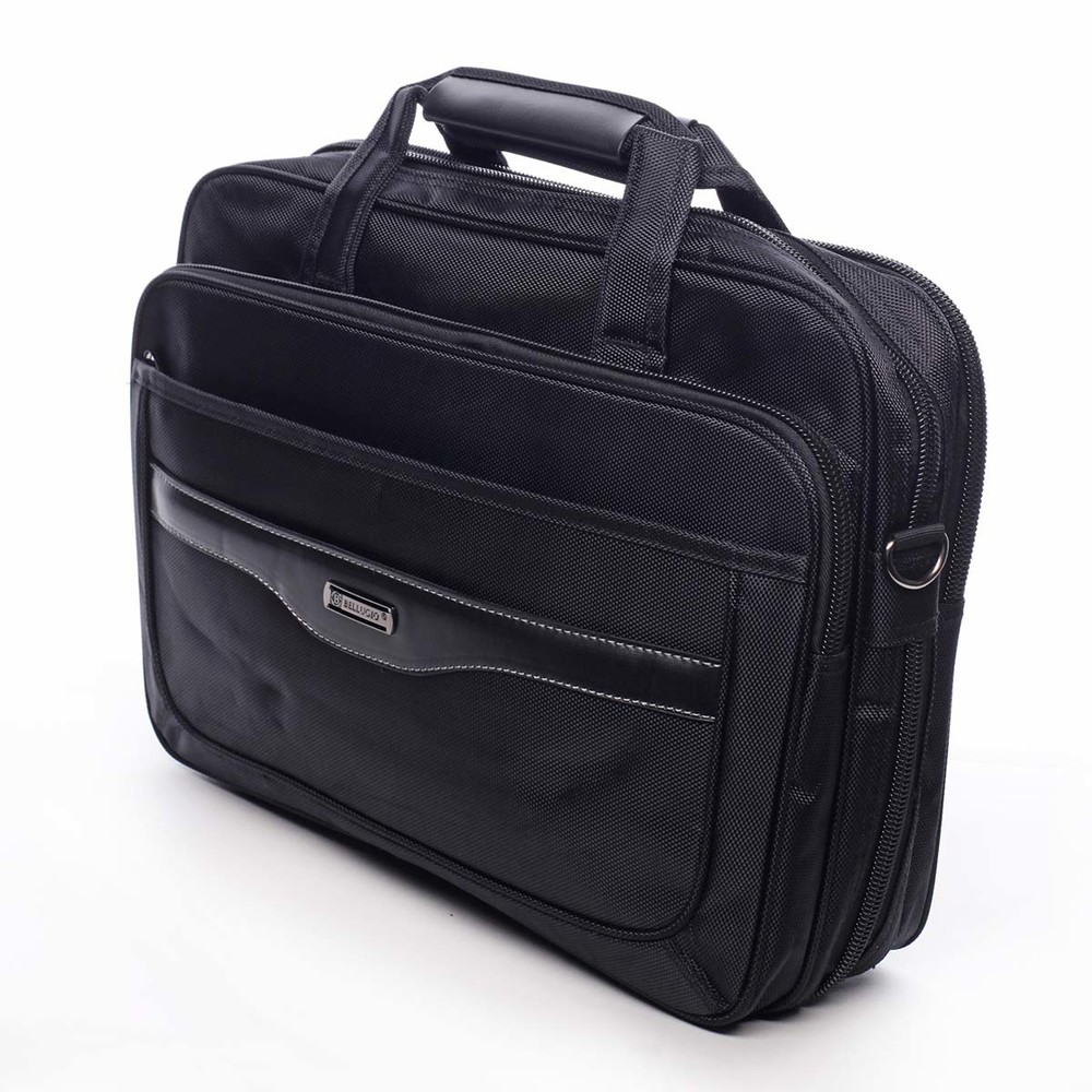 Hledáte moderní, přitom slušnou pracovní tašku, která pojme Vaše osobní věci, spisy a notebook (max. 38 x 29 cm), který bude díky polstrované kapse v bezpečí? Přinášíme Vám novou látkovou černou brašnu značky Bellugio s pevnější konstrukcí. Ideální taška do práce a na cesty. Může vyhovovat i ženám. Přední strana nabídne střední a velkou kapsu na zip, kde jsou malé kapsičky na drobnosti, tužky a telefon. Také využijete kapsy se suchým zipem, kde je lem tvořen prošívanou syntetickou kůží. Taška disponuje dvěma hlavními prostory a její dno lze rozšířit pomocí zipu. Uvnitř jedné kapsy je střední kapsa se zipem, uvnitř další kapsy je polstrovaná přihrádka na již zmíněný notebook. Popruh k tašce má ramenní gumovou výztuž a uši lze pomocí suchého zipu připnout k sobě, jsou obšité syntetikou. Manipulace v ruce je tedy příjemná. Tašce nechybí kapsa na zadní straně a také poutko na madlo kufru či kufrové cestovní tašky. Objednejte ještě dnes a vyzkoušejte, vrátit ji můžete až za 30 dnů! Novinka 2019!