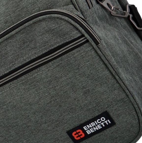 Lehká, prostorná, šedá taška - brašna Enrico Benetti, perfektní tip pro pány i dámy, jako pracovní či sportovní kousek. Popruh této tašky je nastavitelný a nechybí zde posuvné polstrování na rameno. Dno brašny lze zpevnit pomocí vložky. Hlavní kapsa se otevírá dvojitým širokým zipem a na konci otevírání je navíc suchý zip. Na dokumenty lze využít další velkou kapsu se zipem. Další dvě středně velké kapsy jsou na přední straně tašky, uvnitř jedné z nich jsou dvě volné síťované kapsy. Spodní strana disponuje plastovými cvoky, které Vám budou nápomocné při zajištění stability tašky. Nosit tašku můžete i za uši, které jsou pro Vaše pohodlí zajištěny polstrováním se suchým zipem. Zadní strana nabídne široké poutko se suchým zipem pro připevnění tašky na madlo kufru. Novinka! Objednejte ještě dnes a vyzkoušejte, vrátit ji můžete až za 30 dnů!
