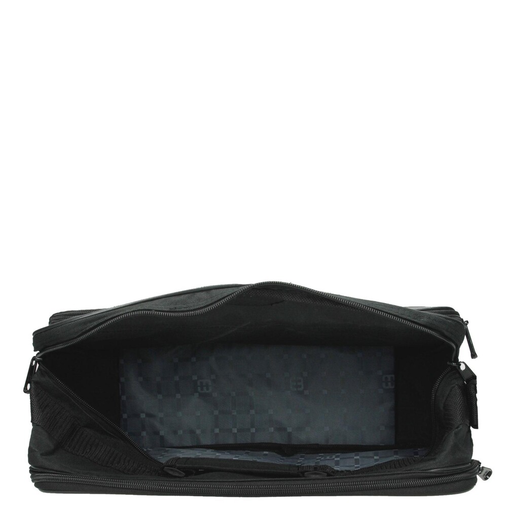 Látková taška Enrico Benetti na notebook s vyztuženým dnem. Dvě hlavní přihrádky jsou uzavíratelné na zip. Ucho na nošení v ruce je pevné. Popruh na nošení na rameni, nebo do kříže, je odnímatelný a nastavitelný. Další přihrádky jsou na přední straně, také na zip. Dno má z vnější strany čtyři cvočky k ochraně proti odření. Tašku lze vzít i jako příruční zavazadlo do letadla.