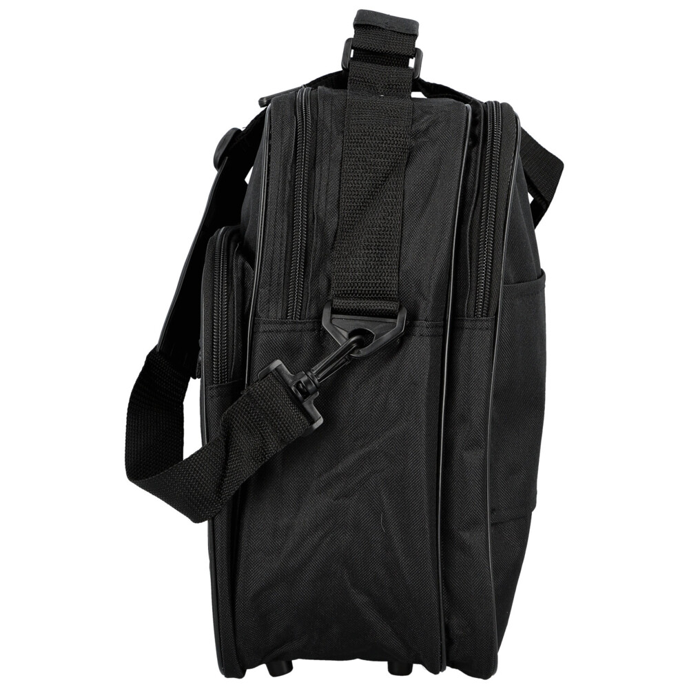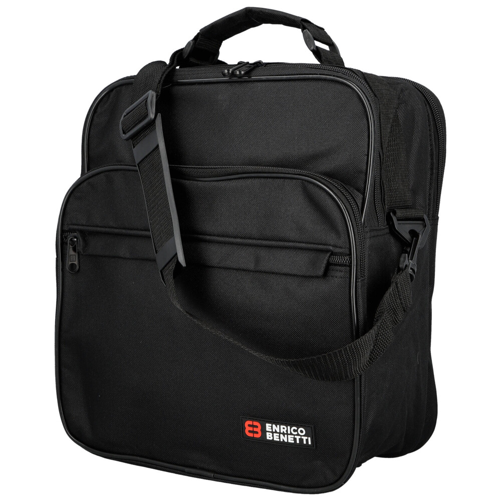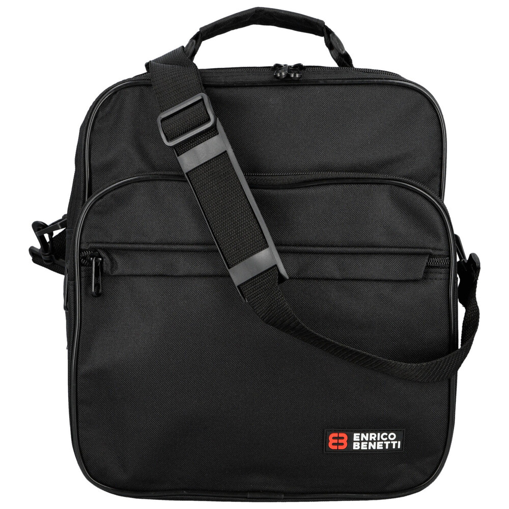 Poohlížíte se po kvalitní, ale ne moc drahé, brašně přes rameno, v látkovém provedení, se kterou můžete do práce, do posilovny nebo i do letadla? Pak Vám můžeme nabídnout skvělou černou tašku přes rameno, od značky Enrico Benetti. Objednejte ještě dnes a vyzkoušejte, vrátit ji můžete až za 30 dnů! Do tašky uložíte veškeré potřebné věci, spisy i oblečení. Tato lehká látková taška bude vyhovovat každému muži. Nabízí dvě velké hlavní kapsy a dvě kapsy na přední straně. Všechny kapsy jsou se zipy. Na zadní straně je místo kapsy látkový pás se suchým zipem, díky kterému umístíte tašku k madlu kufru při cestách. Popruh je odnímatelný, klasický látkový, s gumovým posuvným polstrováním na rameno. Dno brašny lze zpevnit vložkou a stabilitu udrží čtyři plastové cvoky.