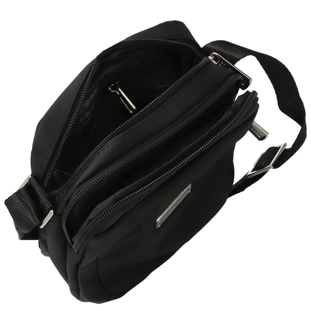 Moderní pánská crossbody taška menší velikosti z kvalitního textilního materiálu, ideální pro každodenní nošení. Nabízí dvě hlavní zipové kapsy, které poskytují dostatek prostoru pro osobní věci, a uvnitř najdete praktické kapsičky v podšívce pro lepší organizaci. Na přední straně je umístěna schovaná zipová kapsa a pod ní decentní logo značky ve stříbrném odstínu. Nastavitelný textilní popruh zajišťuje pohodlí při nošení, zatímco stříbrné kování dodává tašce elegantní a moderní vzhled. Objednejte ještě dnes a vyzkoušejte, vrátit ji můžete až do 30 dnů!