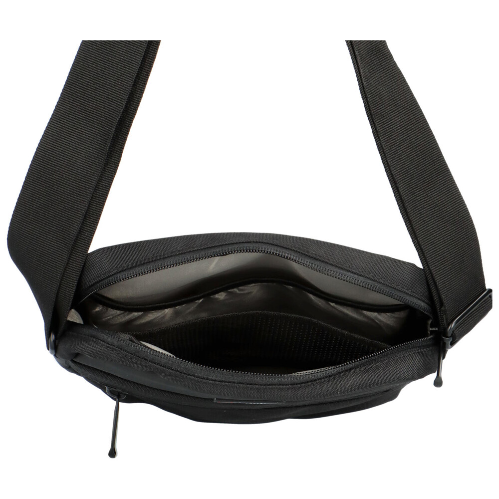 Kvalitní pánská taška od značky Enrico Benetti ke každodennímu nošení. Středně velký model v černé barvě lze nosit přes rameno, nebo do kříže díky nastavitelnému popruhu. Popruh tašky je hrubší, látkový. Přední strana tašky má jednu kapsičku na zip. Hlavní prostor crossbody se otevírá na zip, uvnitř jsou dvě postranní přihrádky. Zadní strana tašky má také kapsičku na zip. Ideální crossbody, které s Vámi bude vždy a všude!