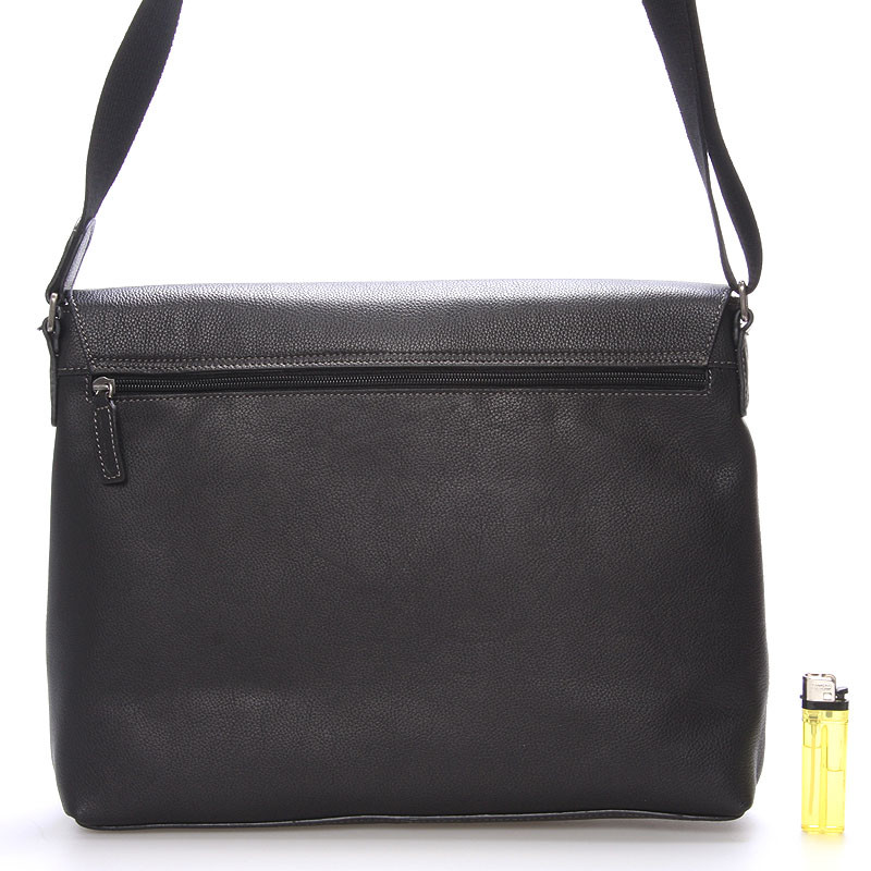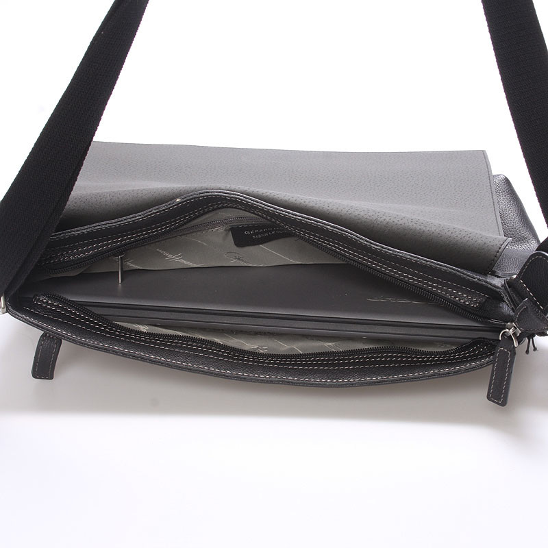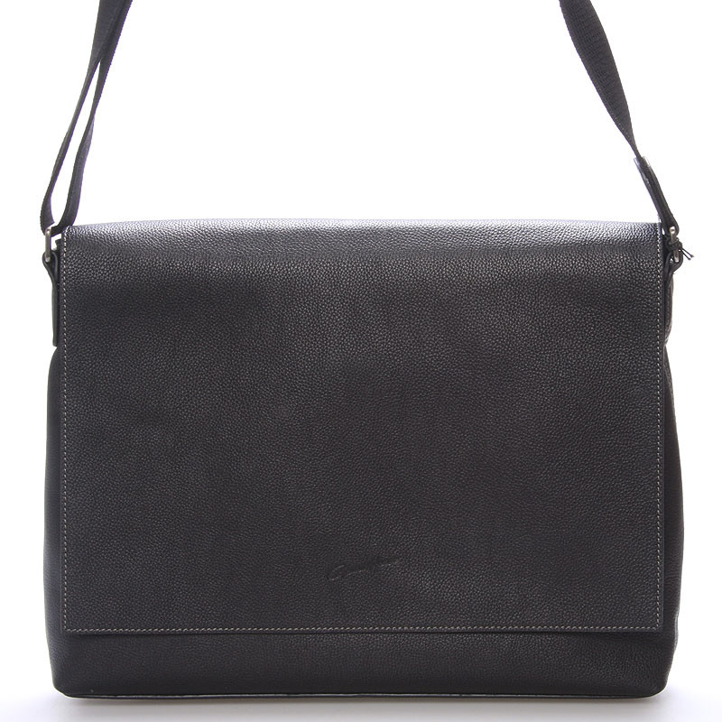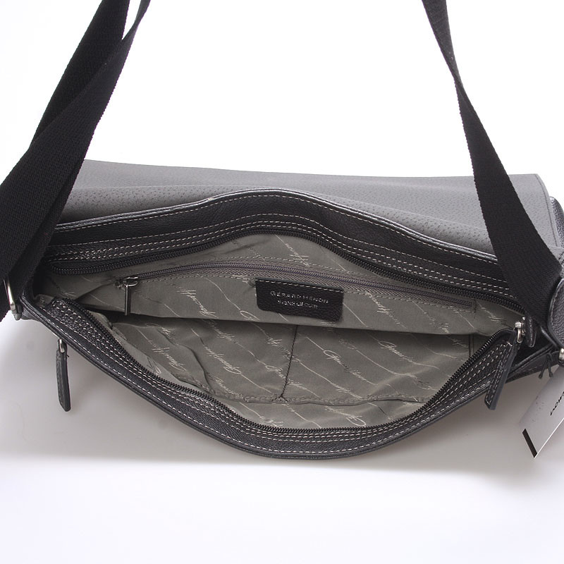 Černá luxusní originální kožená taška přes rameno Gerard Henon pro muže co mají úroveň. Je módní, ale přitom praktická. Tělo tašky je z hovězí kůže, kvalitně zpracované, a prošívané. Taška patří mezi větší a zavírá se klopou. Je jednofochová s menšími kapsičkami na drobnosti. Na přední straně pod klopou je další kapsa na zip. Novinka. Objednejte ještě dnes a vyzkoušejte, vrátit ji můžete až za 30 dnů!