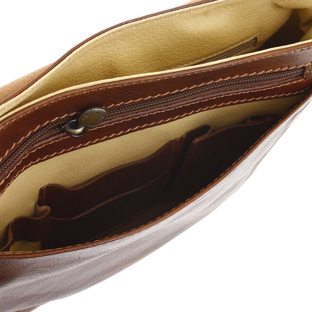 Značka Italy stvořila luxusní pánskou tašku Jamar. Tato antukově hnědá kožená taška přes rameno nesmí chybět žádnému pořádnému muži. Je kvalitně zpracovaná a dostatečně prostorná, takže Vám bude dlouho sloužit. Taška se zavírá klopou na dva magnetické cvočky. Obsah je tedy dobře chráněn. Uvnitř je prostorná, s menší kapsou na zip. Na čele tašky je volná kapsa s přihrádkami na drobnosti a kapsa na zip, kam lze uložit věci potřebné po ruce. Novinka na našem e-shopu.