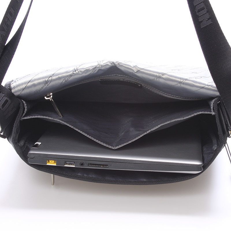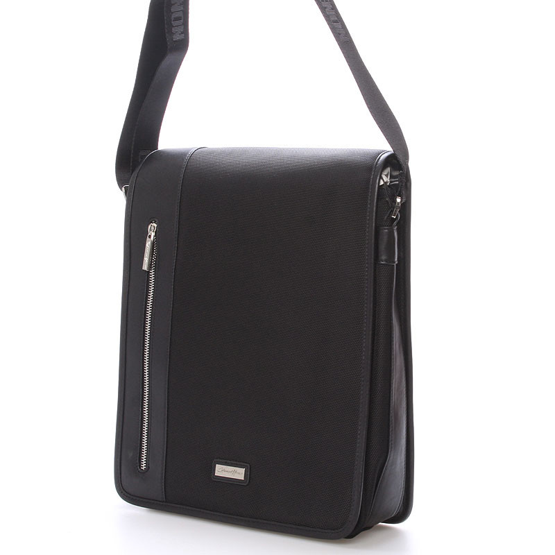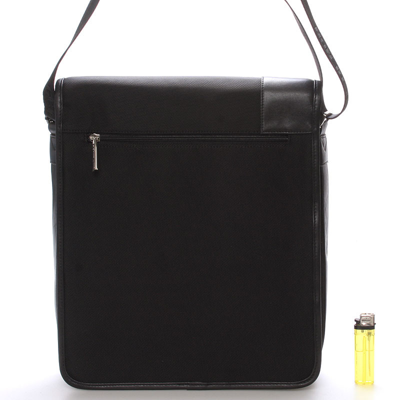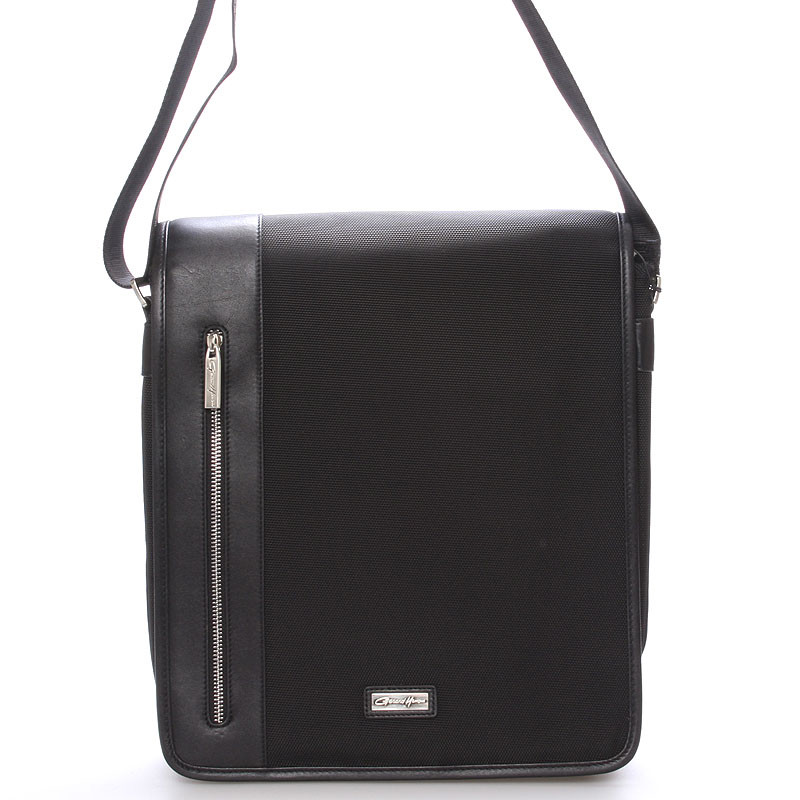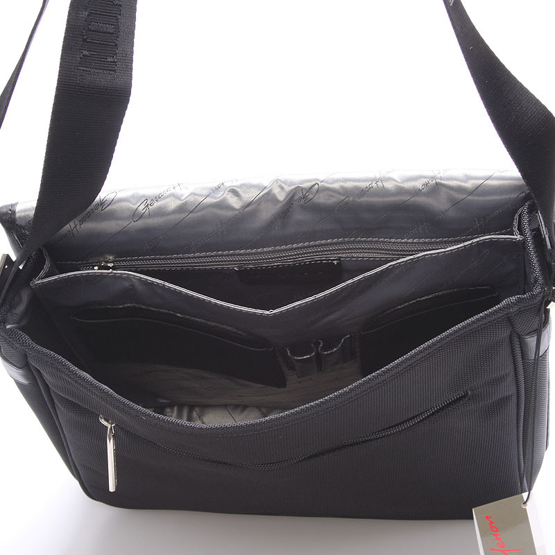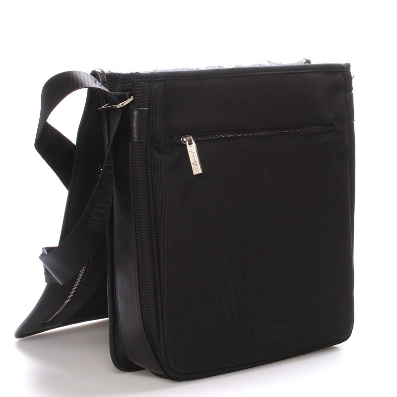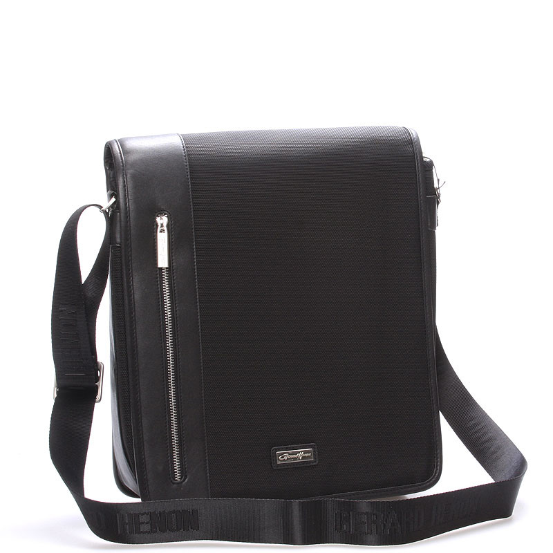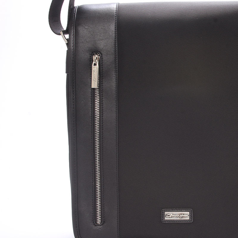 Černá luxusní originální taška přes rameno Gerard Henon pro muže co mají styl. Co jí říkáte? Je stylová, neformální, ale také elegantní a business. Taška je nylonová s koženými detaily. Taška je větší a zavírá se klopou na magnet. Uvnitř jsou dvě hlavní přihrádky, dále menší kapsičky na tužky a na drobnosti a jedna na zadní straně na zip. Na klopě je rovněž kapsa na zip. Do tašky se vleze notebook s max. rozměry 26 x 30 cm.Novinka. Objednejte ještě dnes a vyzkoušejte, vrátit ji můžete až za 30 dnů!