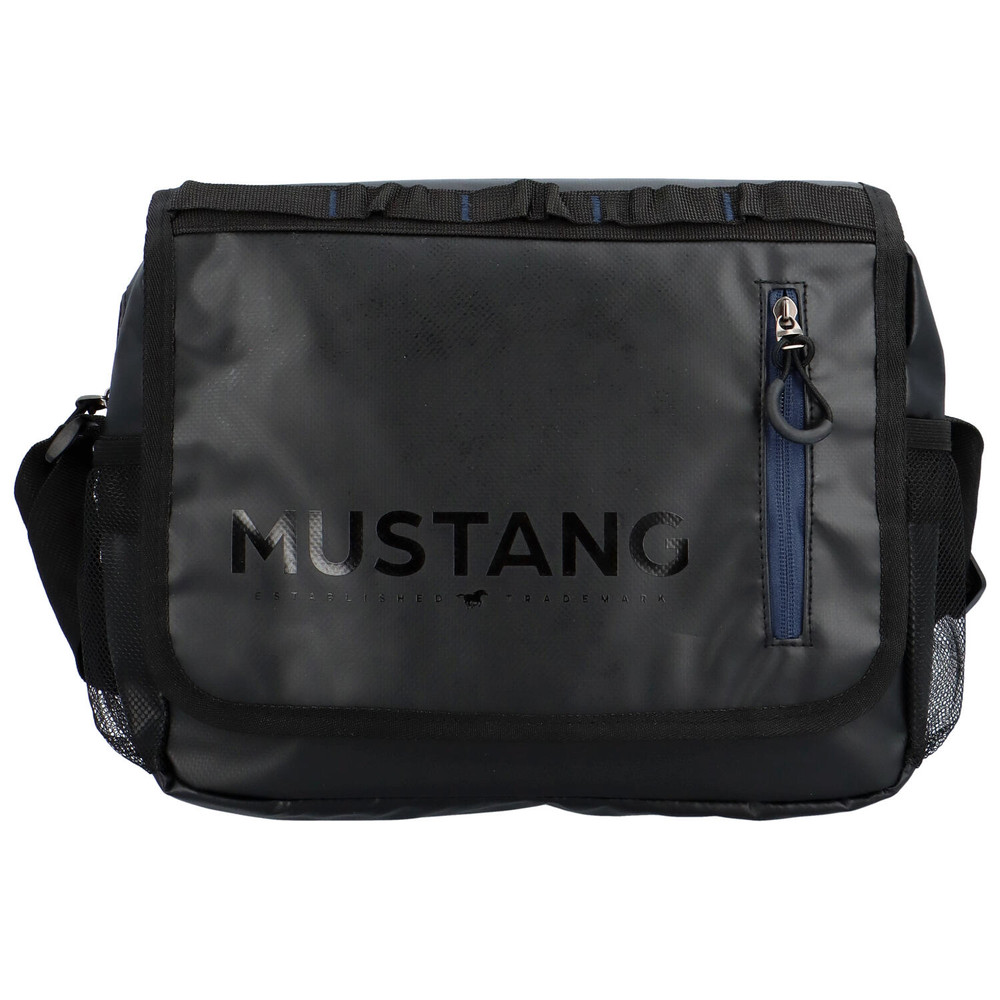 Novinka. Kvalitní a stylová značka Mustang. Objednejte ještě dnes a vyzkoušejte, vrátit ji můžete až za 30 dnů. Voděodolná středně velká taška v černé barvě s tmavě modrými detaily se pyšní svou multifunkčností. Klopa se svislou kapsou se otevírá suchým zipem, je zde také několik látkových poutek a pod klopou najdete volnou kapsu. Hlavní prostor se otevírá zipem, uvnitř najdete kapsičku se zipem. Další kapsa se zipem je na zadní straně tašky. Na bocích jsou navíc síťované volné kapsy, uložit si sem můžete svačinu či láhev (cca 0,5L). Skvělá sportovní, pracovní i volnočasová taška přes rameno nebo crossbody, pro muže i ženy.