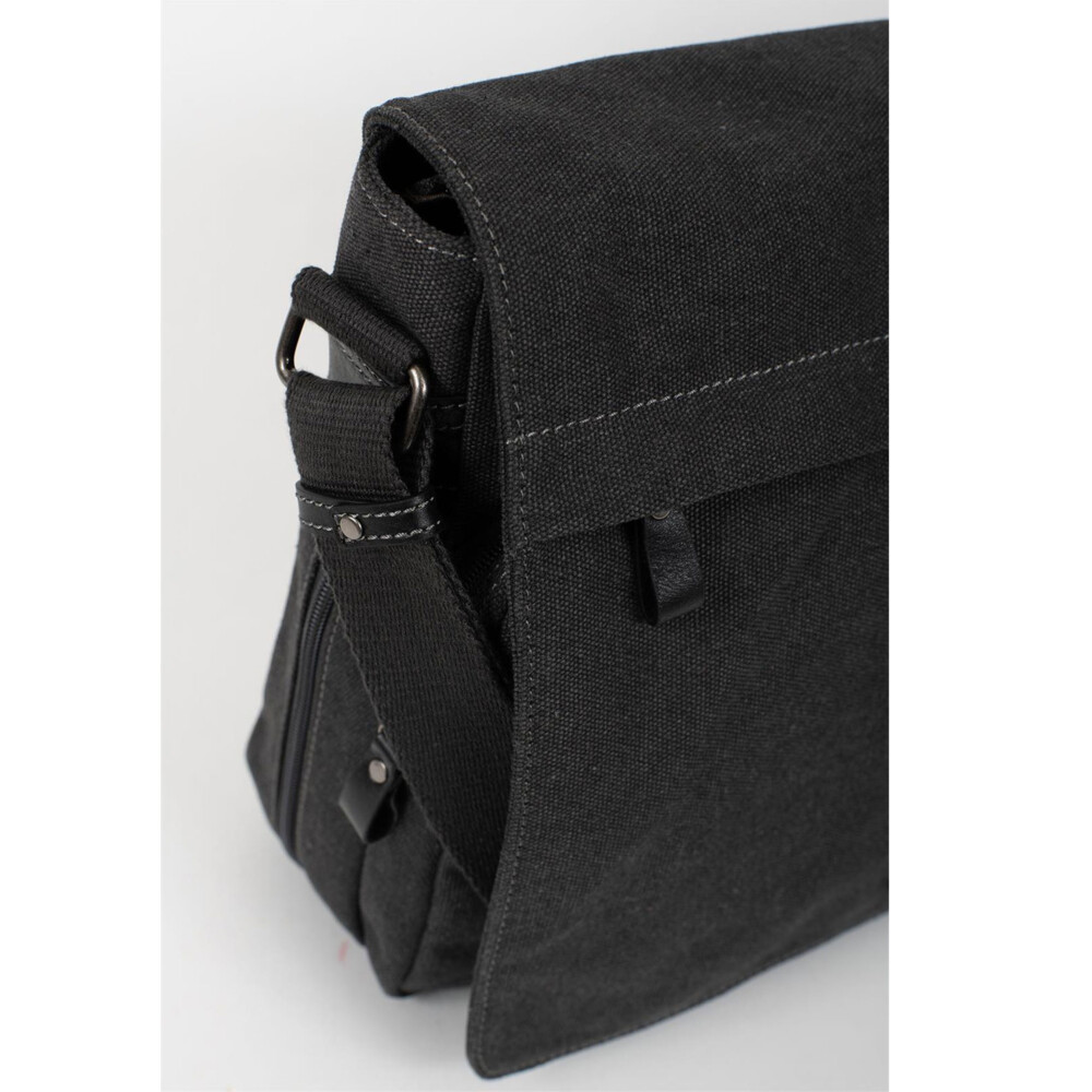 Objednejte ještě dnes a vyzkoušejte, vrátit ji můžete až do 30 dnů! Tato taška přes rameno z "canvas" materiálu je ideální volbou pro všechny, kteří chtějí funkční doplněk do školy, do práce, na schůzky i na cesty. Spojuje minimalistický design, pevný materiál a promyšlené vnitřní uspořádání. Tmavě šedý až černý materiál, ze kterého je taška zhotovena, je známý svou odolností a nízkou hmotností. Díky tomu je taška lehká, ale zároveň dostatečně pevná a kvalitní pro každodenní používání. Přes hlavní kapsu se zipem přechází klopa s kapsou na zip. Všimnete si i menších kožených detailů, které dodávají tašce na kvalitě. Uvnitř je rozdělena na dvě přihrádky, kam si uložíte osobní věci, svačinu i notebook. Nechybí zde menší vnitřní kapsa na drobnosti nebo velká kapsa se zipem na zadní straně. Taška lze také prohloubit a to pomoci zipu na boku.