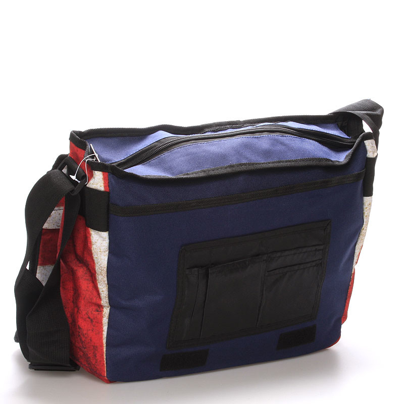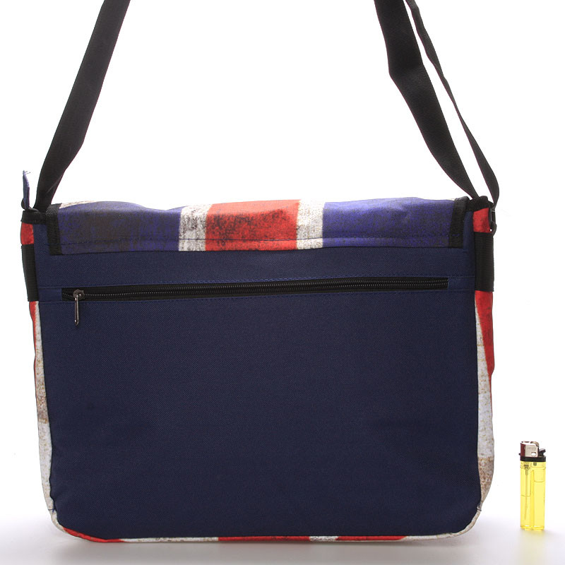 Trendy látková taška značky NEW REBELS přes rameno se vzorem vlajky United Kingdom Vám bude sloužit každý den a rozhodně zpestří Váš outfit. Taška je střední velikosti má jednu hlavní kapsu na zip. Zavírá se klopou na suchý zip a pod klopou jsou další dvě větší a dvě menší kapsičky. Novinka. Objednejte ještě dnes a vyzkoušejte, vrátit ji můžete až za 30 dnů!