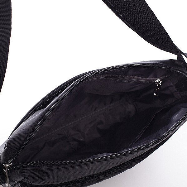 Černá taška přes rameno Diviley z textilu. Černá barva je univerzální pro každého a s šedým proužkem ve spodní části tašky si užijete její svěží design. Jednoduchý styl tašky Diviley vás dostane. Tvar na šířku je typickým znakem tohoto kousku, který doplní váš šatník. Taška má velkou kapsu, která ukrývá další dvě kapsy, jednu na zip a jednu bez zipu. Zepředu větší kapsa na zip, zezadu další. Ideální pro volný čas. Novinka! Objednejte ještě dnes a vyzkoušejte, vrátit ji můžete až za 30 dnů!