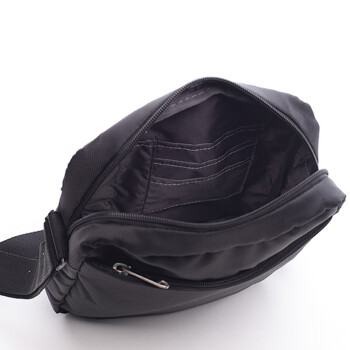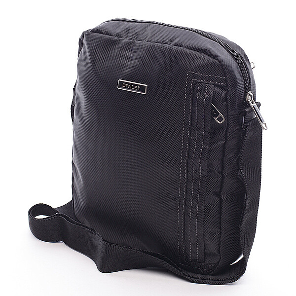 Černá taška přes rameno Diviley z kvalitního textilu. Taška většího rozměru je vhodná i pro schování tabletu a všech potřebných pánských drobností. Taška má velkou kapsu, která ukrývá další dvě kapsy, jednu na zip a jednu bez zipu. Zepředu větší kapsa na zip, zezadu další kapsa na zip. Ideální pro volný čas. Novinka 2015.