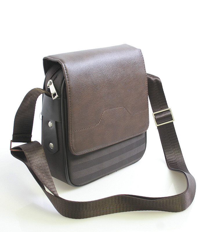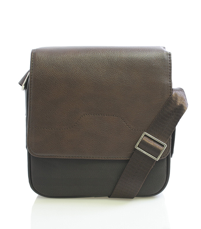 Hnědá taška přes rameno na doklady Delami. Taška drží tvar, po obvodě je zpevněná. Uvitř má kapsu bez zipu na mobil a jednu kapsu se zipem. Zezadu další kapsa na mag. cvoček. Součástí dokladovky je nastavitelný popruh z nylonu. Kování ve stříbrném provedení. Taška je sportovně elegantní, tudíž ji můžete nosit jak k saku, tak i k riflím.