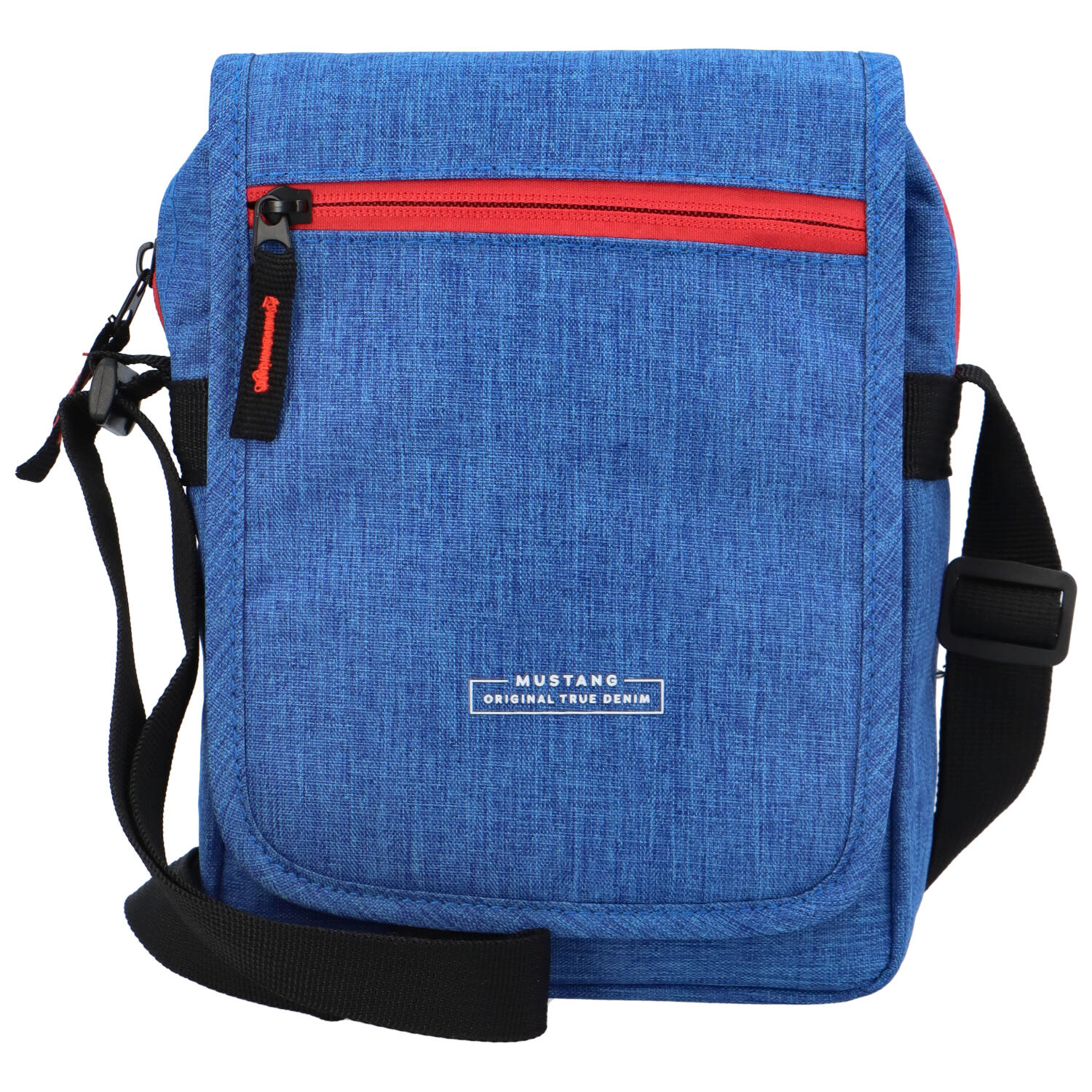 Novinka! Objednejte ještě dnes a vyzkoušejte, vrátit ji můžete až za 30 dnů! Moderní značku Mustang nyní najdete na našem eshopu! Prohlédněte si moderní a zároveň klasickou tašku na doklady v modré barvě s červenými detaily. Tašku je možné nosit přes rameno nebo crossbody. Je látková a velmi lehká. Klopa tašky se otevírá suchými zipy, na ní najdete kapsu na zip. Pod klopou je na přední straně volná středně velká kapsa a uvnitř hlavní kapsy, která se otevírá zipem, je další kapsička. Samozřejmostí je i kapsa na zadní straně tašky.