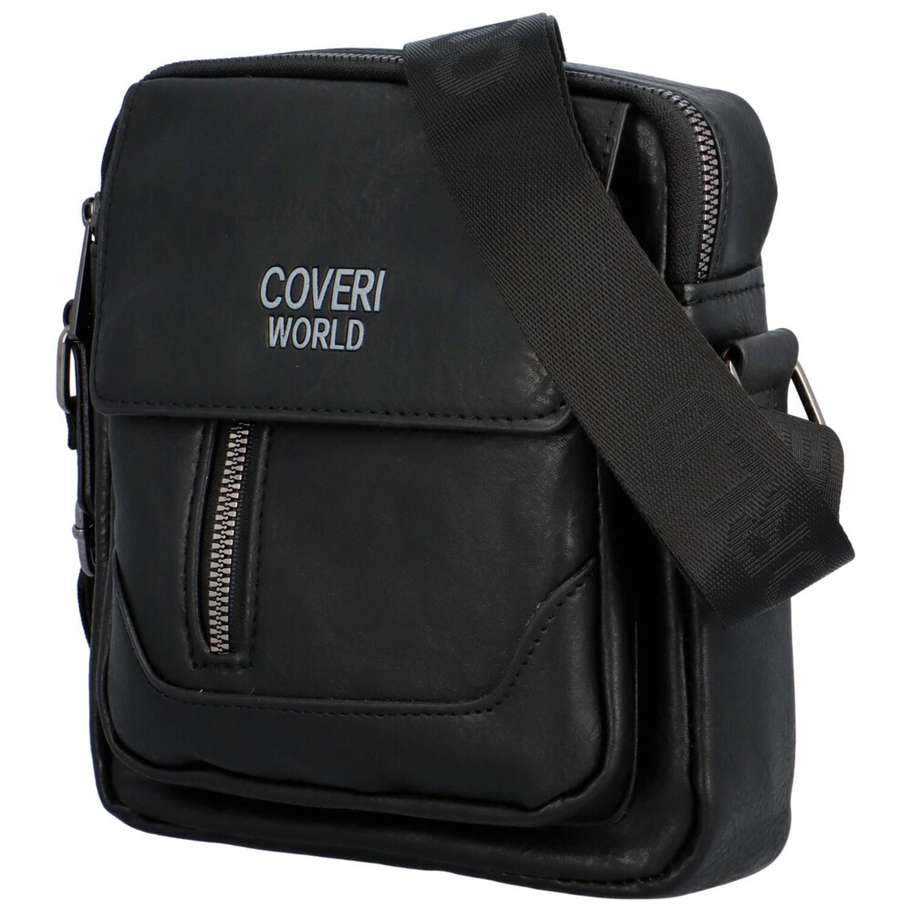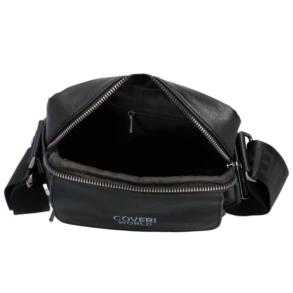 Pánská taška na doklady od značky Coveri World. Objednejte ještě dnes a vyzkoušejte, vrátit ji můžete až za 30 dnů! Taška pro muže přes rameno nebo crossbody v černé barvě. Syntetický kousek do města nebo na cesty do práce, perfektní a stylový pánský doplněk. Kromě popruhu z polyesteru s logem značky Vám brašna nabídne hned několik kapes na zip, na přední straně a pod klopou. Hlavní kapsa se otevírá také zipem. Další kapsičku se zipem najdete na zadní straně brašny i uvnitř hlavního prostoru. Uložíte si zde vše potřebné na každý den.. telefon, doklady, peněženku, sluneční či dioptrické brýle, kapesníky, kapesní nožík.. Malá taštička, kterou prostě potřebujete!