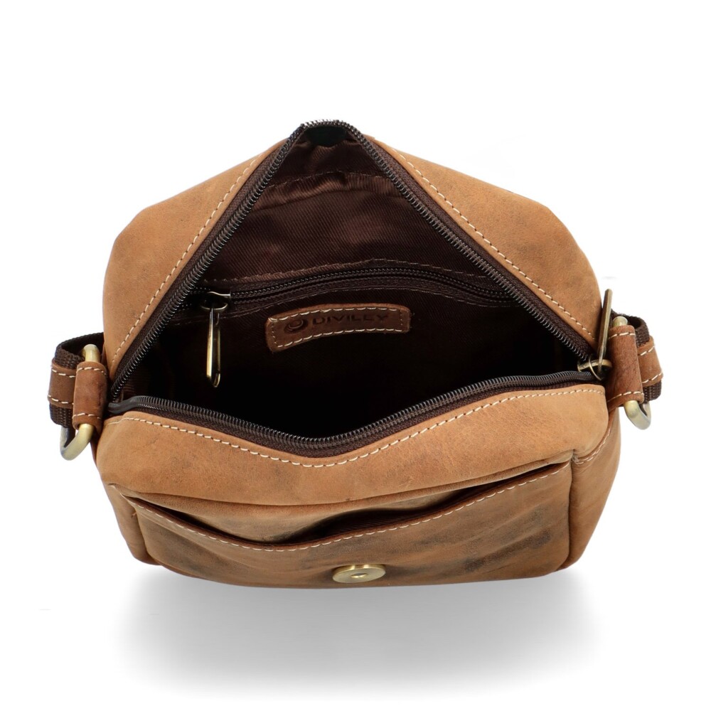 Pánská kožená crossbody/taška hnědá broušená - Diviley Harys