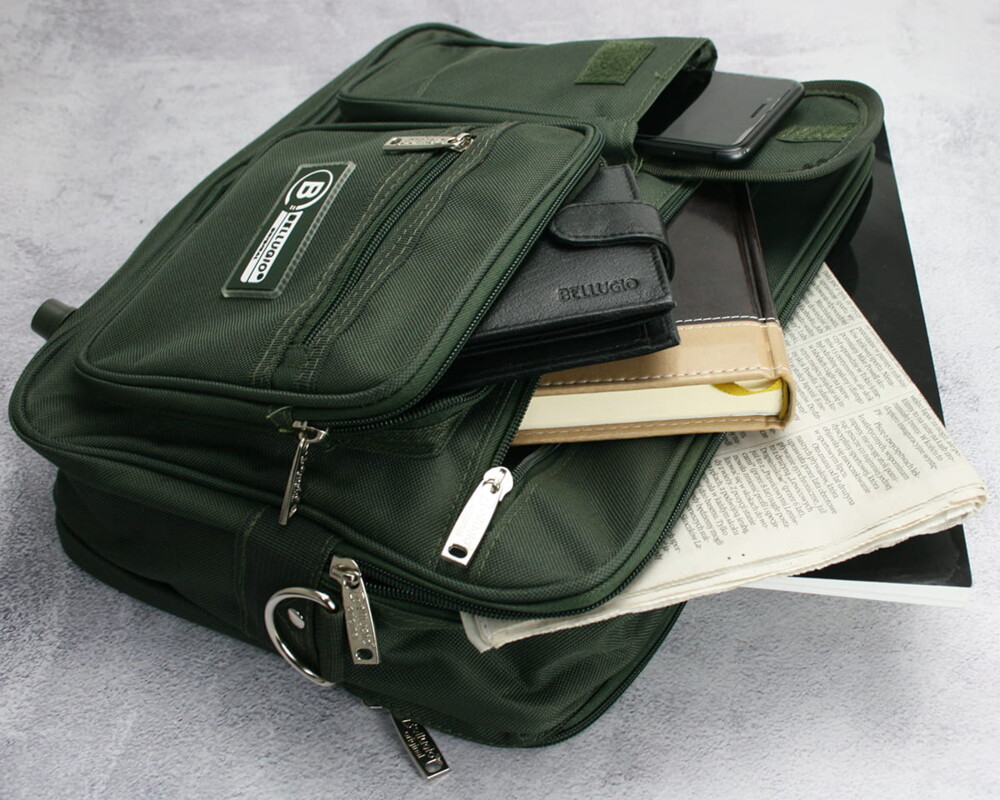 Středně velká, látková, khaki, pánská taška, značky Bellugio. Nosit ji můžete přes rameno nebo crossbody. Je velmi lehká, praktická a veškeré osobní věci se Vám do ní vejdou s přehledem. Na přední straně nabízí praktické kapsičky se zipem i na suchý zip, dále zde najdete tři velké kapsy a uvnitř organizér s klíčenkou. Taška je měkká s možností pevnějšího dna a na spodní straně jsou plastové cvoky, tedy je i stabilní. Popruh je látkový s gumovým polstrováním na rameno. Chybět Vám nebude ani ucho k manipulaci v ruce. Objednejte ještě dnes a vyzkoušejte, vrátit ji můžete až do 30 dnů!
