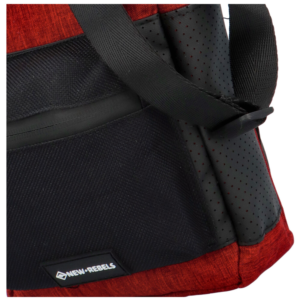 Malá sportovní a praktická crossbody taška značky New Rebels. Objednejte ještě dnes a vyzkoušejte, vrátit ji můžete až za 30 dnů! Nosit ji lze i přes rameno. Má tmavší červenou barvu, na bocích a uvnitř přední kapsy na zip má černé pogumování. Hlavní kapsa je na zip a z obou stran zadní části jsou další kapsičky na zip. Popruh je z polyesteru.
